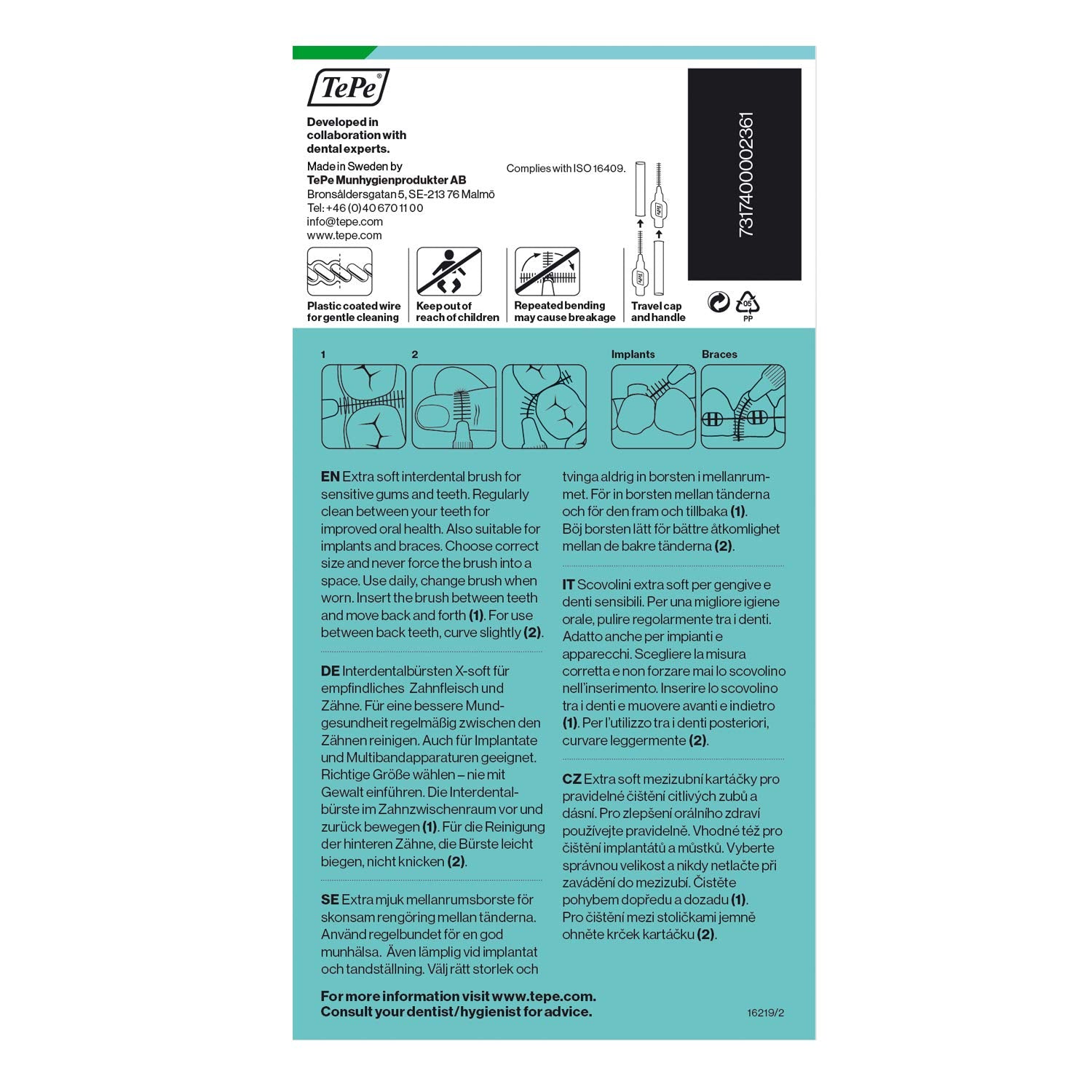 TePe Interdental Brush Extra Soft, Supersoft Dental Brush for Teeth Cleaning, Pack of 8, 0.8 mm, Large Gaps, Green, Size 5