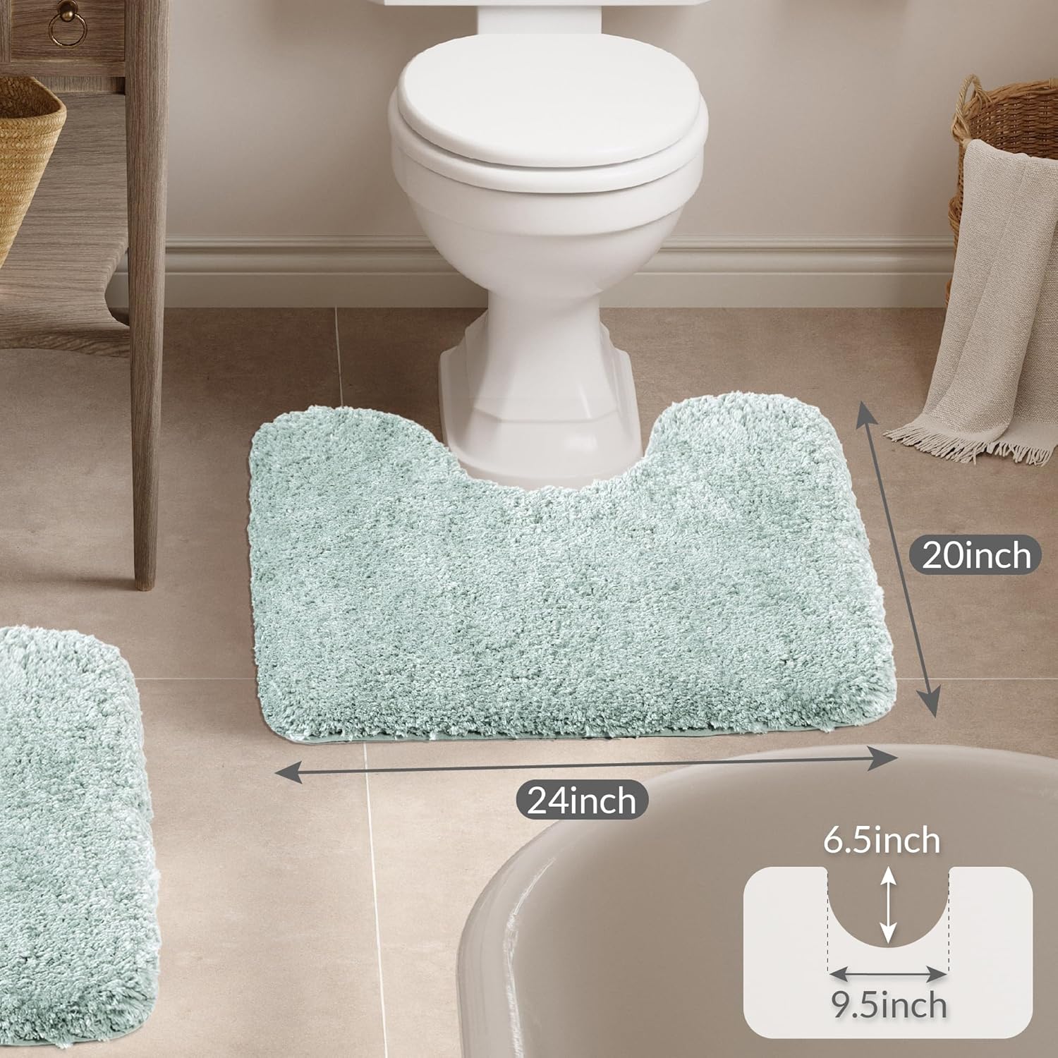 Walensee Contour Rug (20x24, Aqua) Non Slip Bath Mat, Soft Microfiber Shaggy Mat, Machine Washable, U Shape Toilet Rug