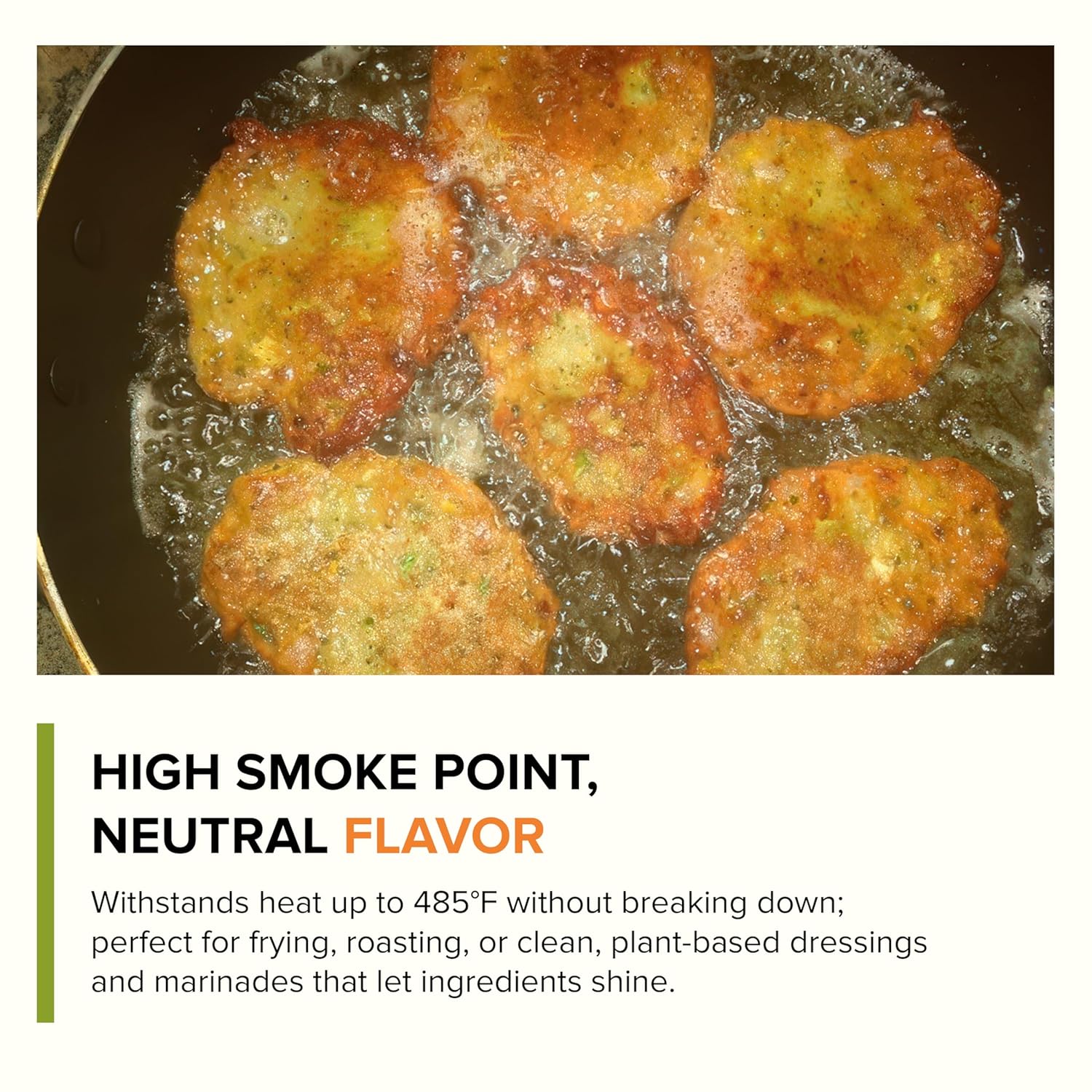 - HIGH SMOKE POINT, NEUTRAL FLAVOR: Withstands heat up to 485°F without breaking down; perfect for frying, roasting, or clean, plant-based dressings and marinades that let ingredients shine.