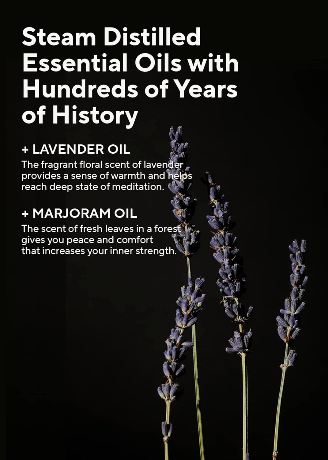 - [ Herbaceous Comfort ] Lavender and marjoram offer a soothing, herbaceous aroma that helps calm complex emotions and fosters a serene focus on your inner self.