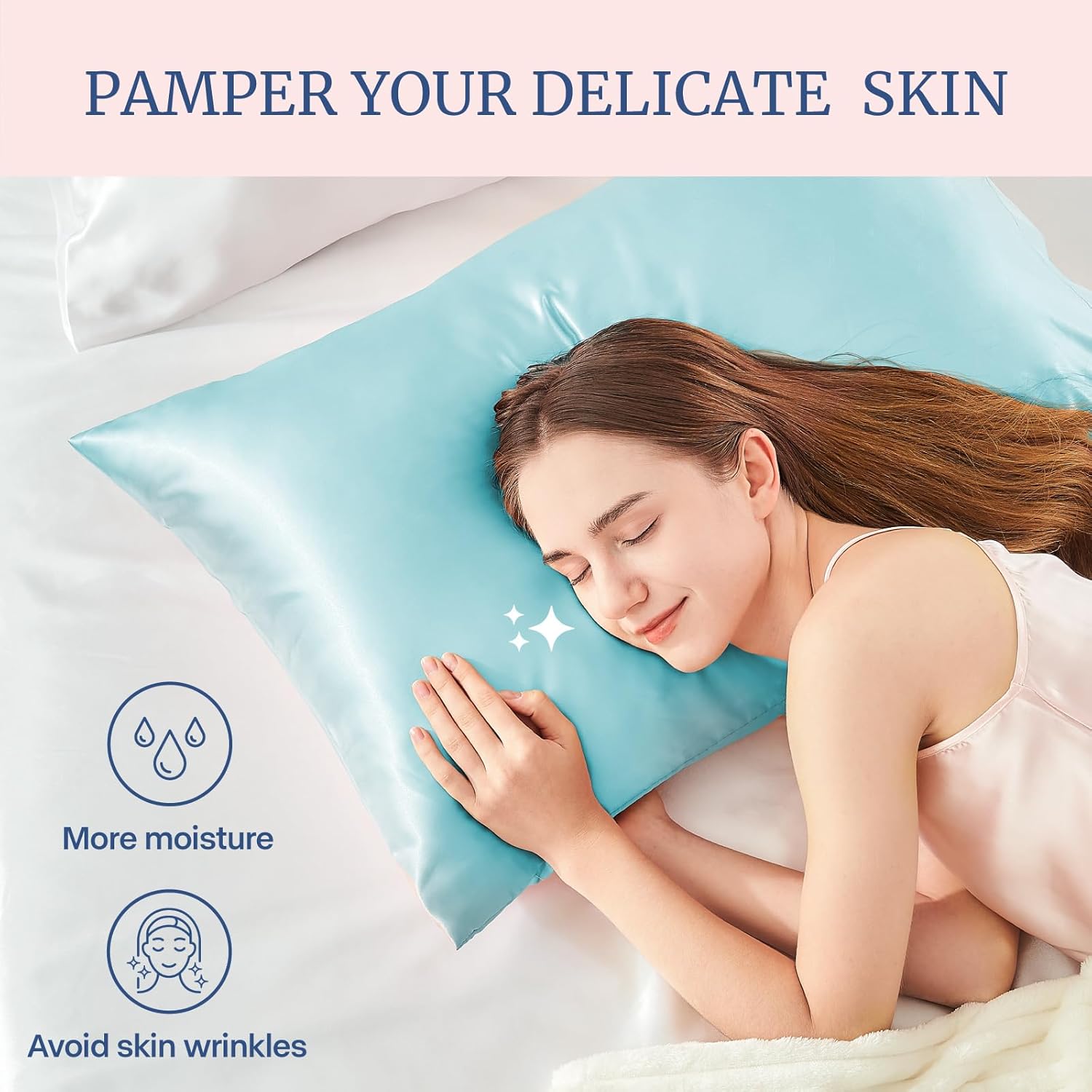 BEDELITE Satin Pillowcase for Hair and Skin, Super Soft and Cooling Similar to Silk Pillow Cases 2 Pack with Envelope Closure, Gift for Women Men(20"x40" King Size, Blue)