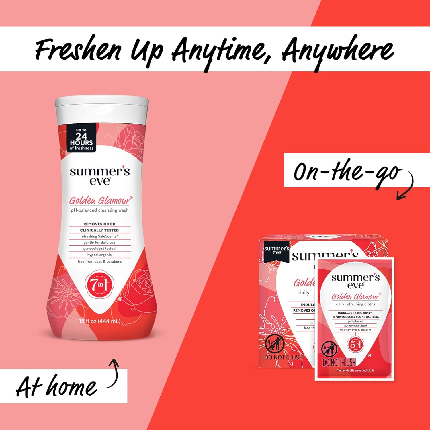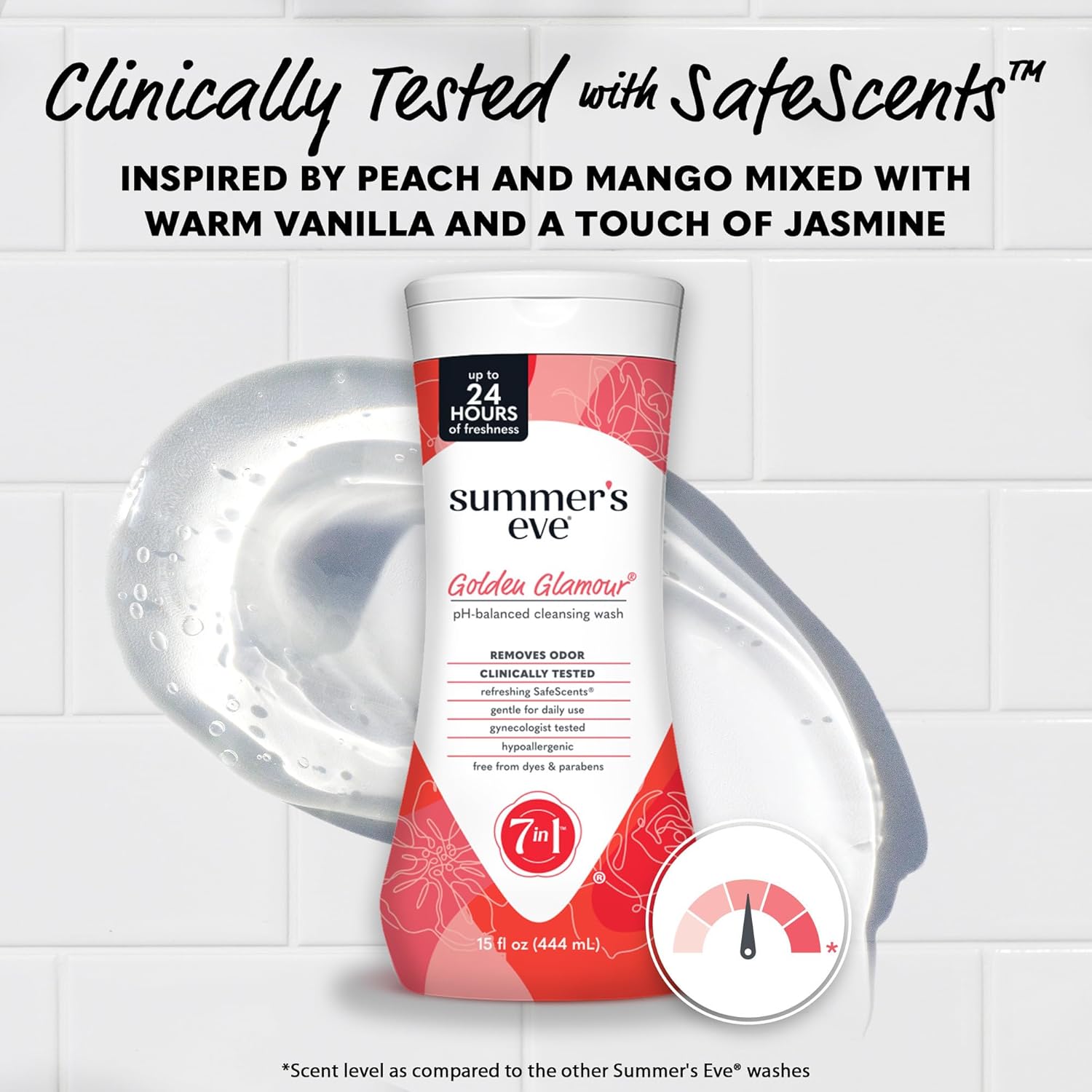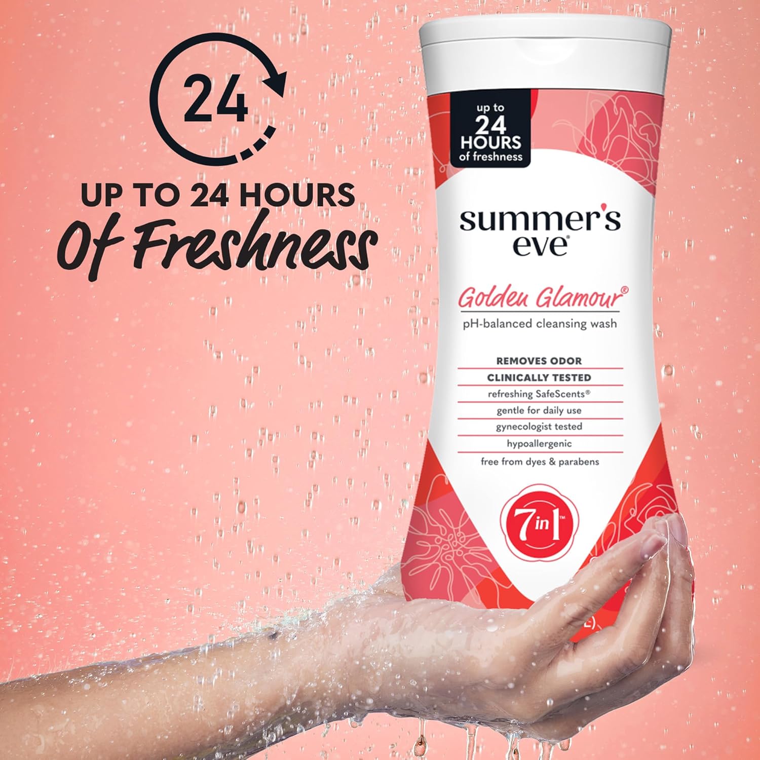 - Summer's Eve Golden Glamour Daily Refreshing Feminine Wash removes odor-causing bacteria