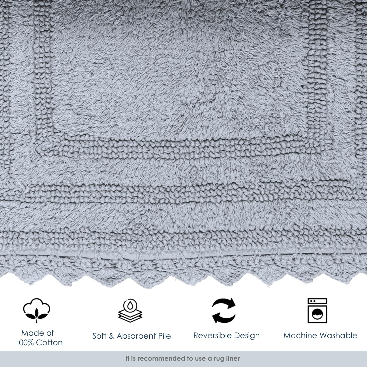RAJRANG Bathroom Rug for Kitchen and Spa with Crochet Pattern Cotton Absorbent Soft Reversible Bath Mat Light Grey Square 24 Inches
