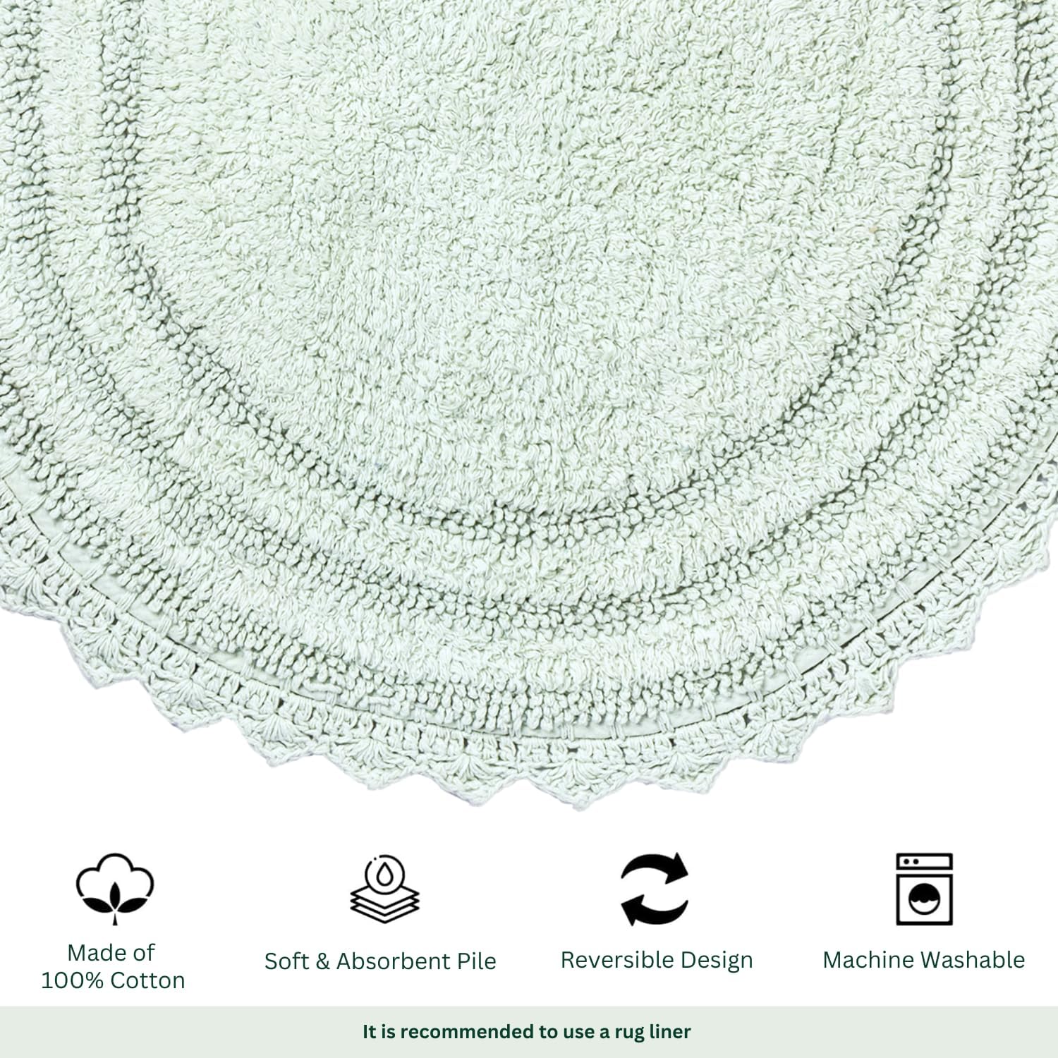 - Crochet design : The crochet design of the rug gives it a unique and stylish look. The intricate design is handcrafted, adding a personal touch to your bathroom decor. The reversible design allows you to flip the rug over and use it on either side.