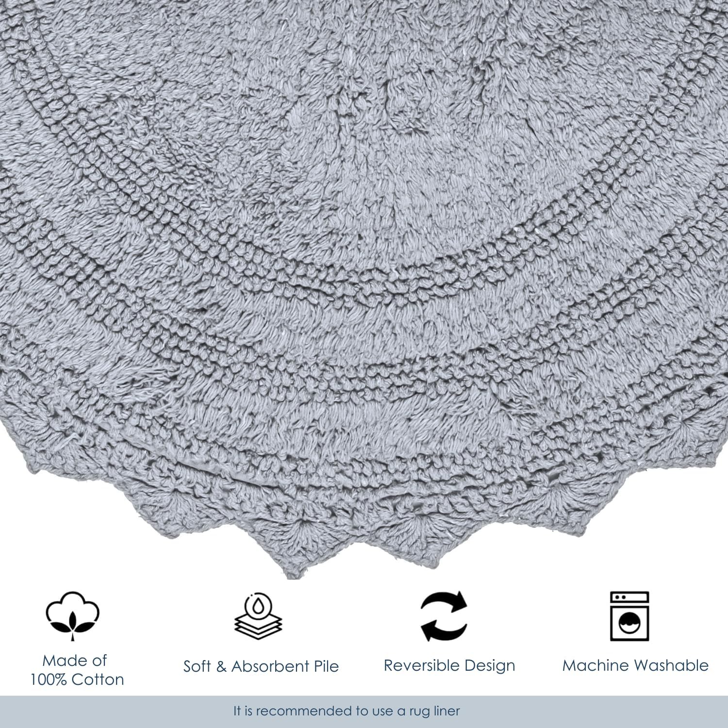 RAJRANG Bathroom Rug for Kitchen and Spa with Crochet Pattern Cotton Absorbent Soft Reversible Woven Bath Mat Light Grey Oval 34 x 21 Inches