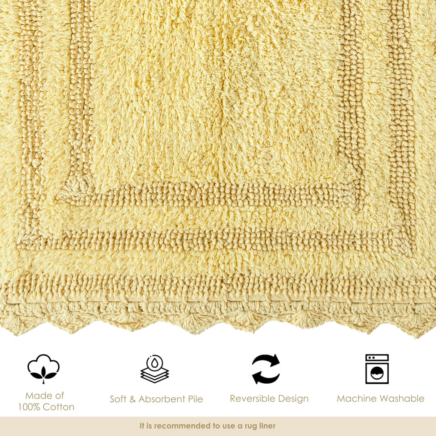RAJRANG Bath Rug for Bathroom Kitchen Spa with Crochet Pattern Cotton Absorbent Soft Reversible Woven Bath Mat Pale Banana Rectangle 34x21 Inches