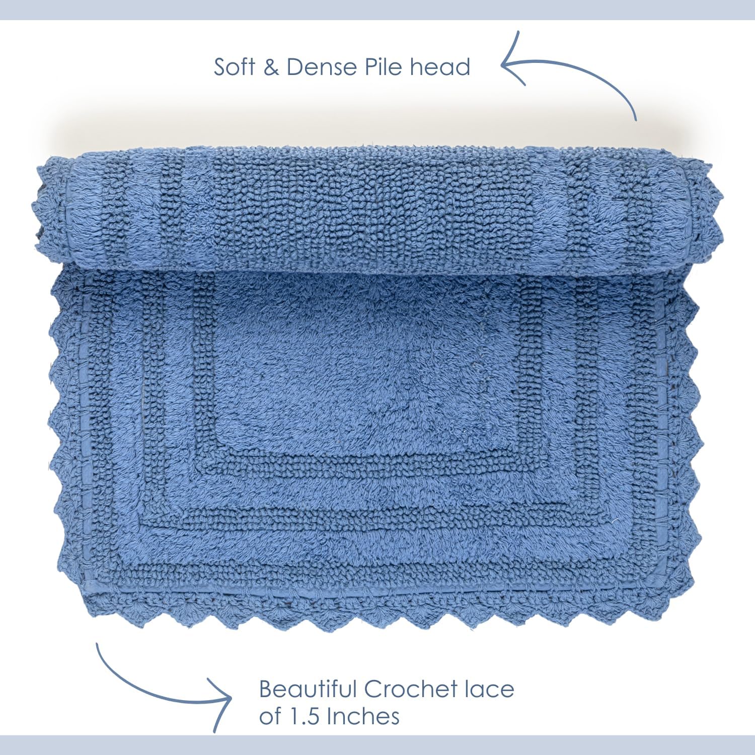 RAJRANG Parisian Blue Bathroom Mat with Crochet Pattern - 34x21 Inches Cotton Reversible Rectangular Bath Rug for Bathroom Spa Hotel and Restaurant
