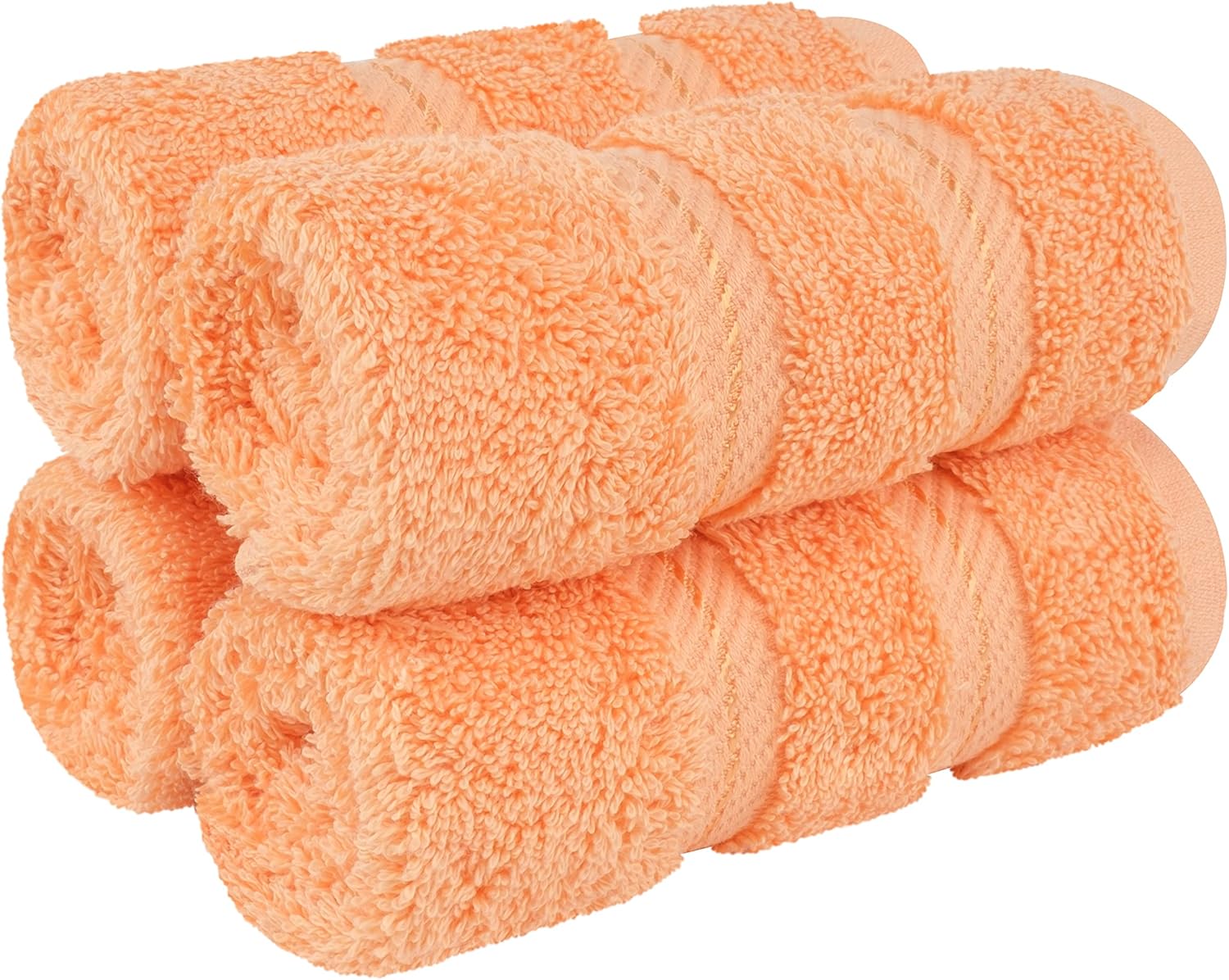 American Soft Linen Luxury Washcloths for Bathroom, 600 GSM 100% Cotton 4 Piece Turkish Wash Cloth Set, 13x13 in Soft Rags for Body and Face, Peach Washcloths