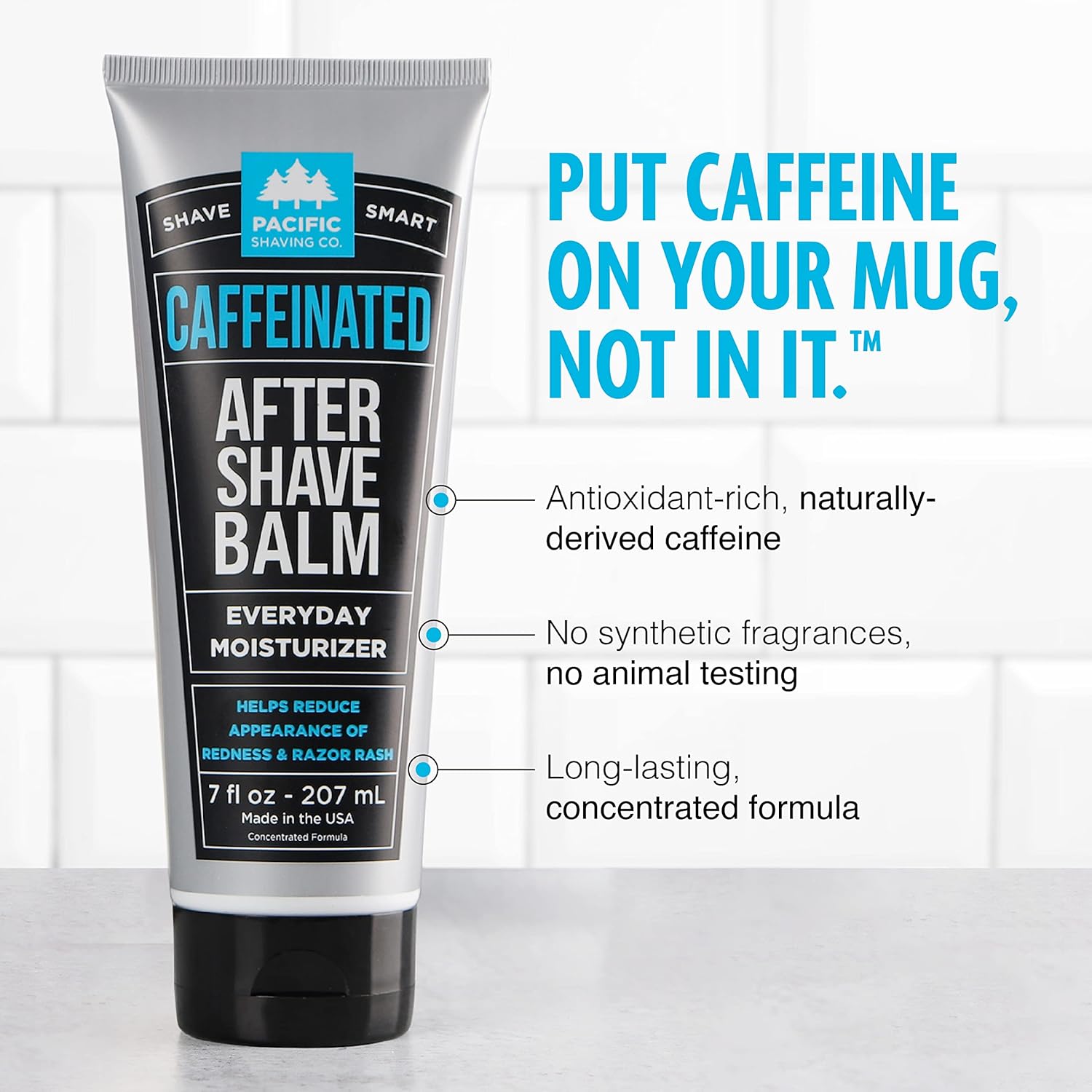 - Energize Skin with Caffeinated Aftershave - This outstanding after shave moisturizer utilizes the many benefits of naturally-derived caffeine to help liven up your morning men's shaving routine. Work this product into any face care routine seasmlessly.
