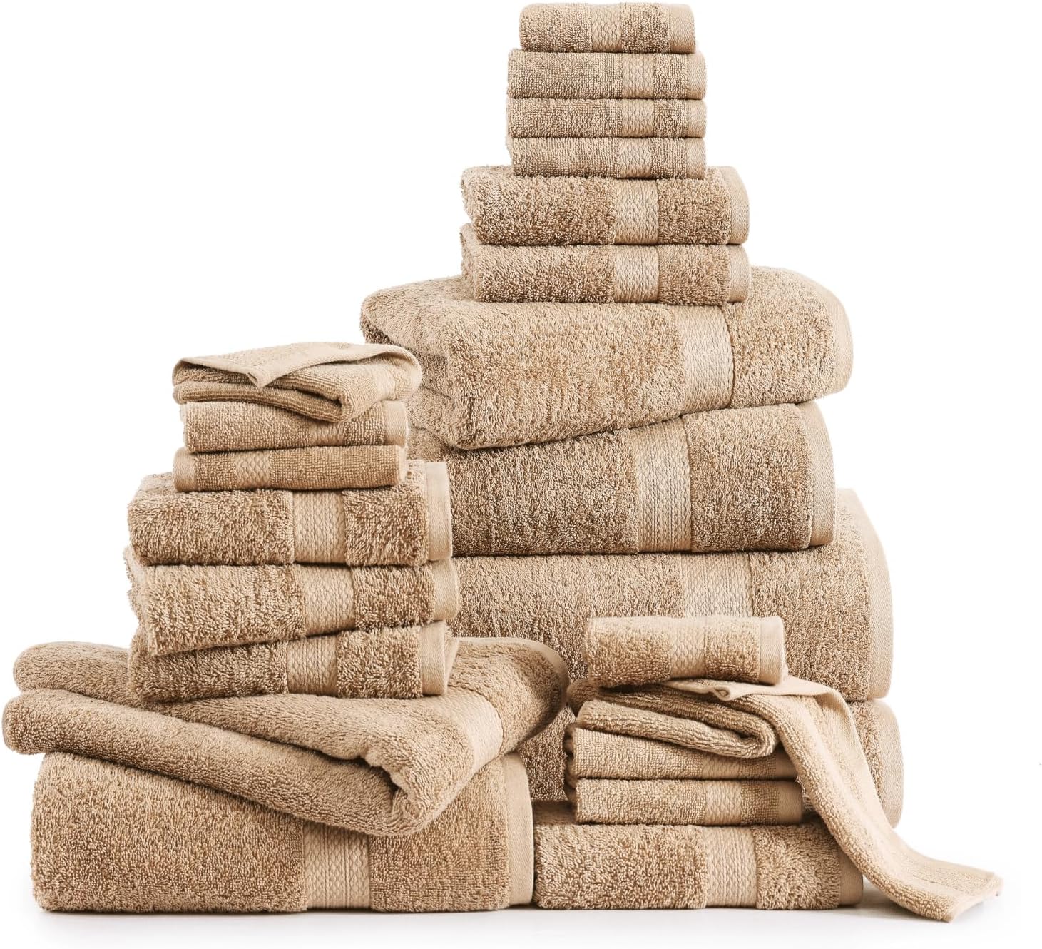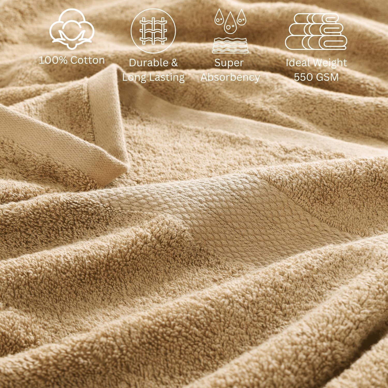 LANE LINEN 100% Cotton Bathroom Towels Set - 24 Pcs - Ring Spun Technology - 2 Bath Sheets, 4 Fingertip, 4 Bath, 6 Hand Towels, 8 Washcloths - Very Soft & Absorbent Even After Multiple Washes - Beige