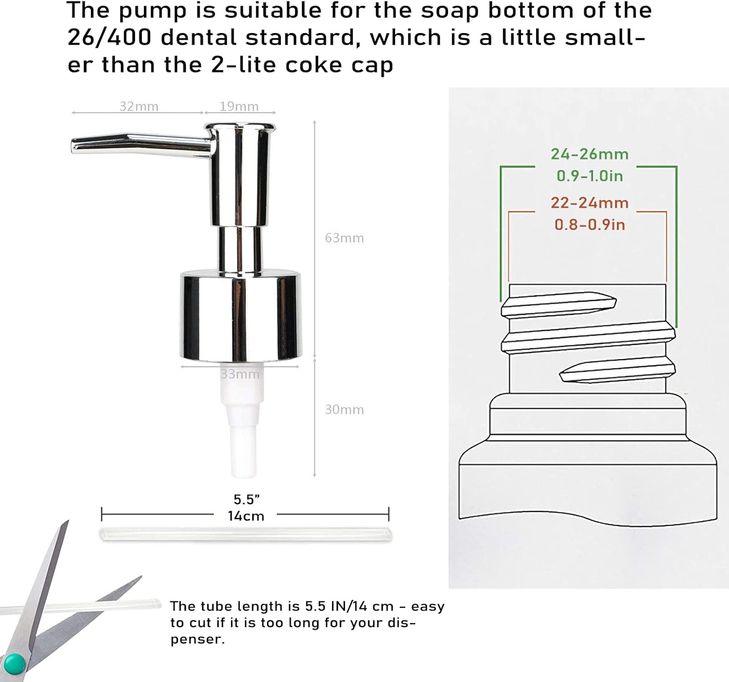 - Soap lotion Dispenser Pump Replacement 2 pieces for Regular Mouth Bottle rust proof