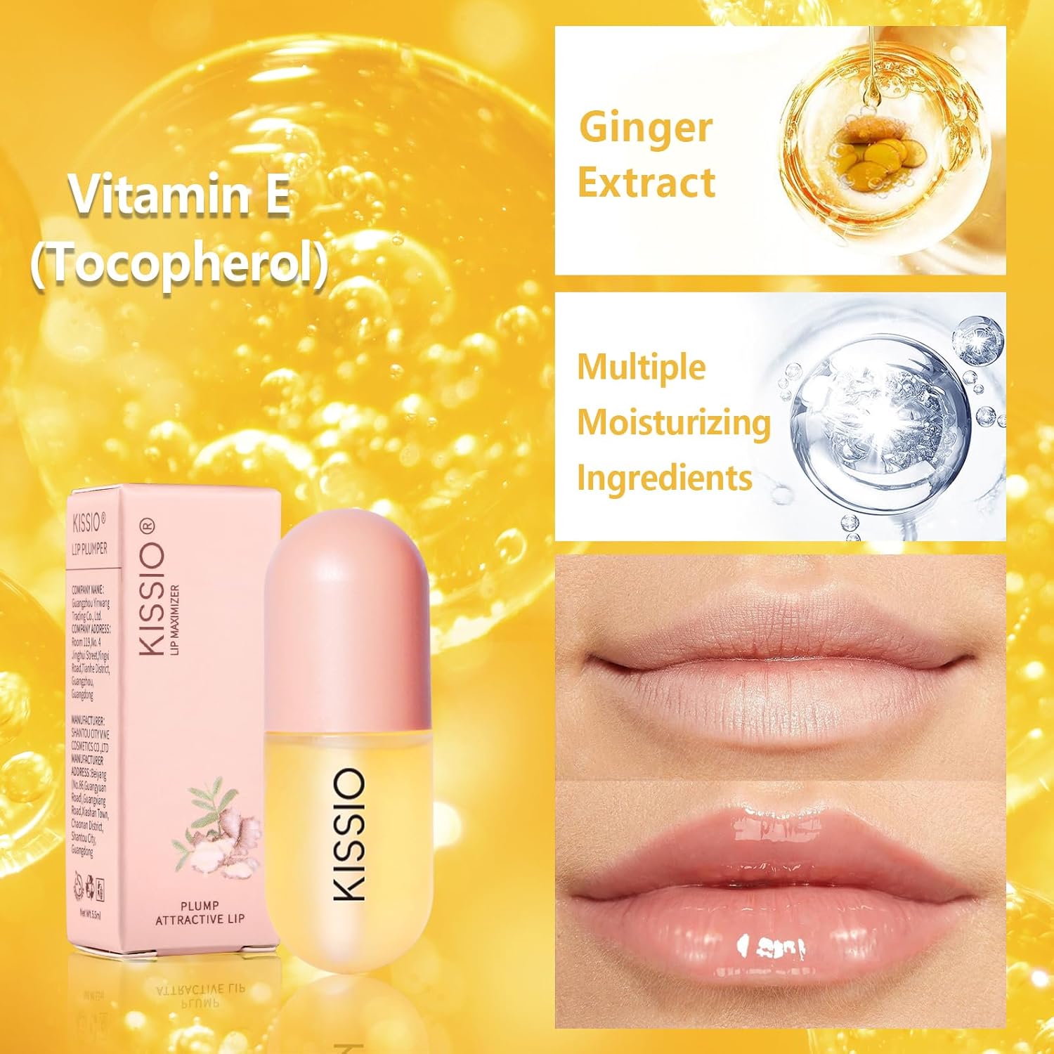 KISSIO Lip Plumper,Natural Lip Plumper for Day Use,Plumping Gloss Make Lips Fuller and Moisturizing 5.5ml,Lips Mask,Hydrating & Reduce Fine Lines,Beautiful Fuller