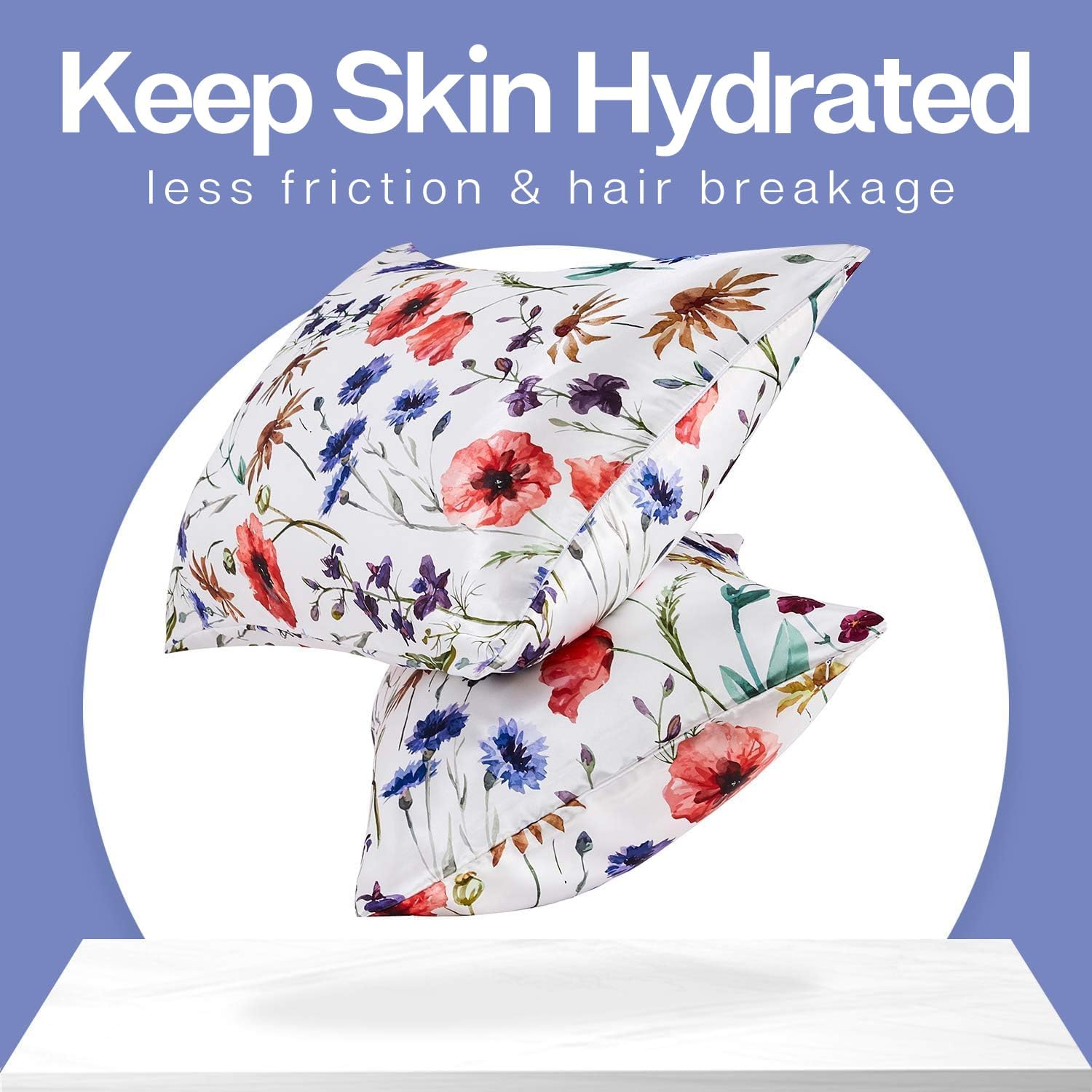 MR&HM Satin Pillowcase for Hair and Skin, Silk Satin Pillowcase 2 Pack, Queen Size Pillow Cases Set of 2, Silky Pillow Cover with Envelope Closure (20x30, Floral Mixted)