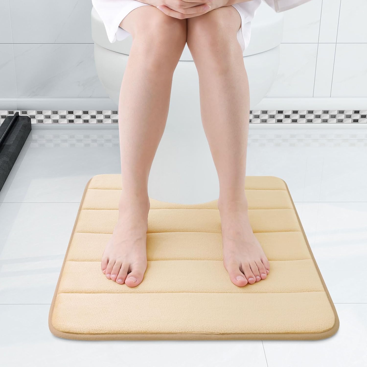 Buganda Memory Foam U-Shaped Contour Toilet Rugs, Non Slip Absorbent, Thick Soft Washable Bathroom Mat, Floor Carpet Bath Rugs Mat for Toilet Base (24" x 20", Gold)