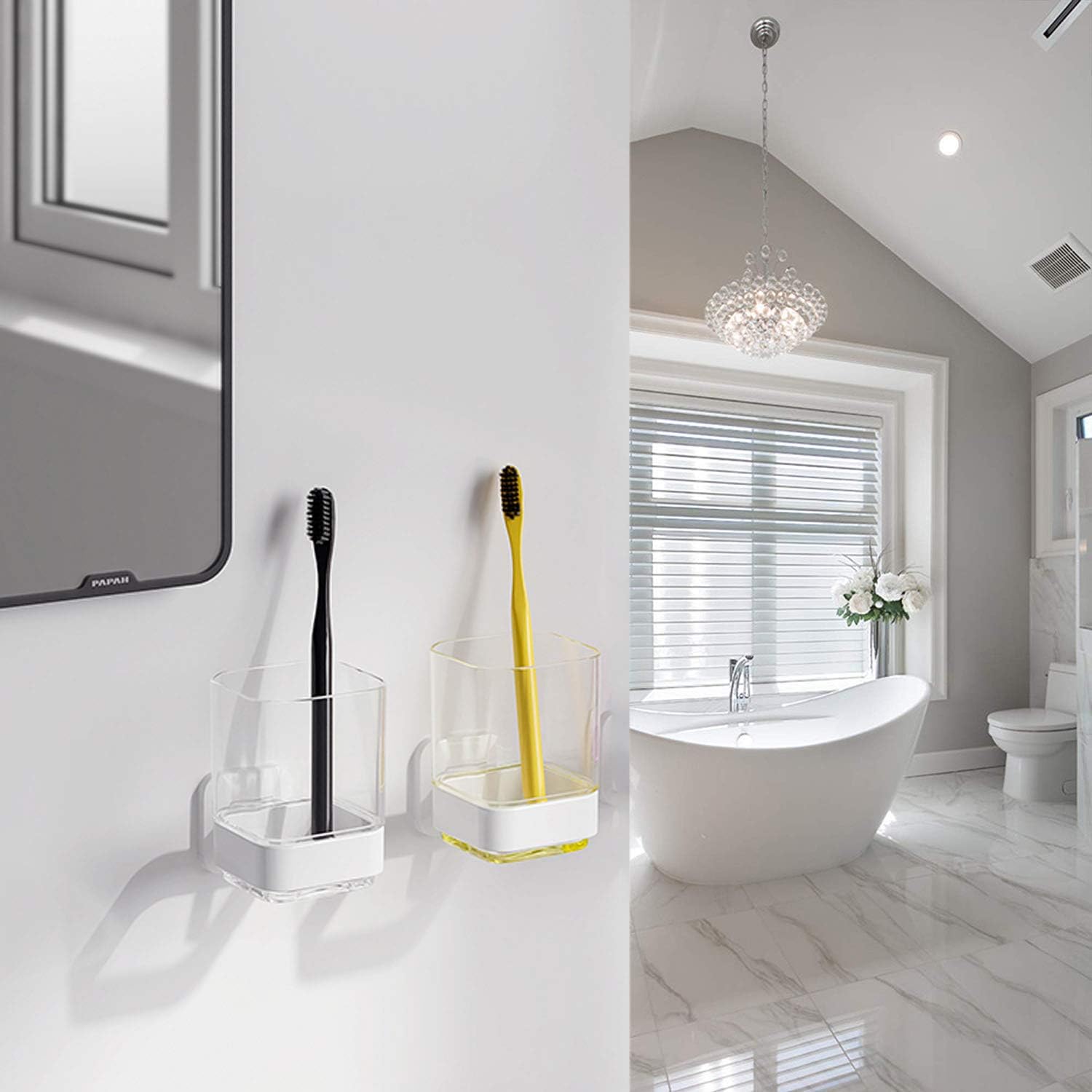 Wall-Mounted Tumbler and Toothbrush Holder, Wall Mounted Adhesive Hanging Electric Toothbrush Organizer Stand for Bathroom with Rinsing Cup, No Drilling Required (White, 3.93"X3.93"X2.97")