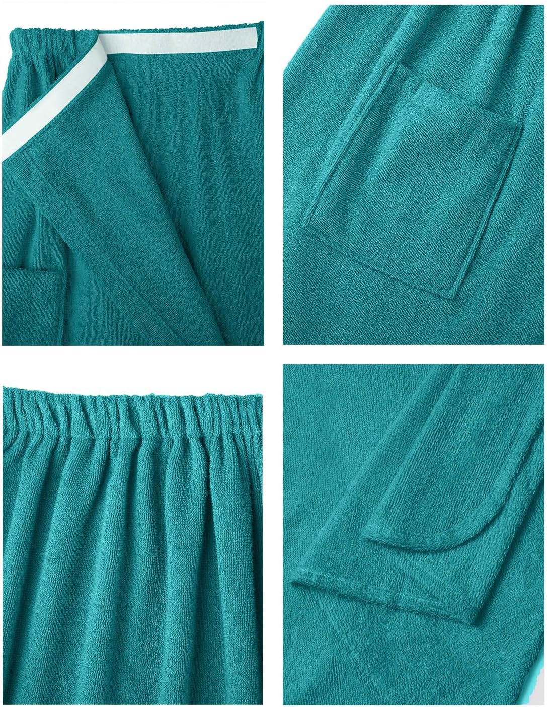 - HUMANIZED DESIGN & HIGH QUALITY: The body wrap features with magic stickers closure, elastic top band design, an extra large pocket adds more convenience. The bath wrap is double stitched for durability, it's won't shrink, fade, or lose their softness after washing.