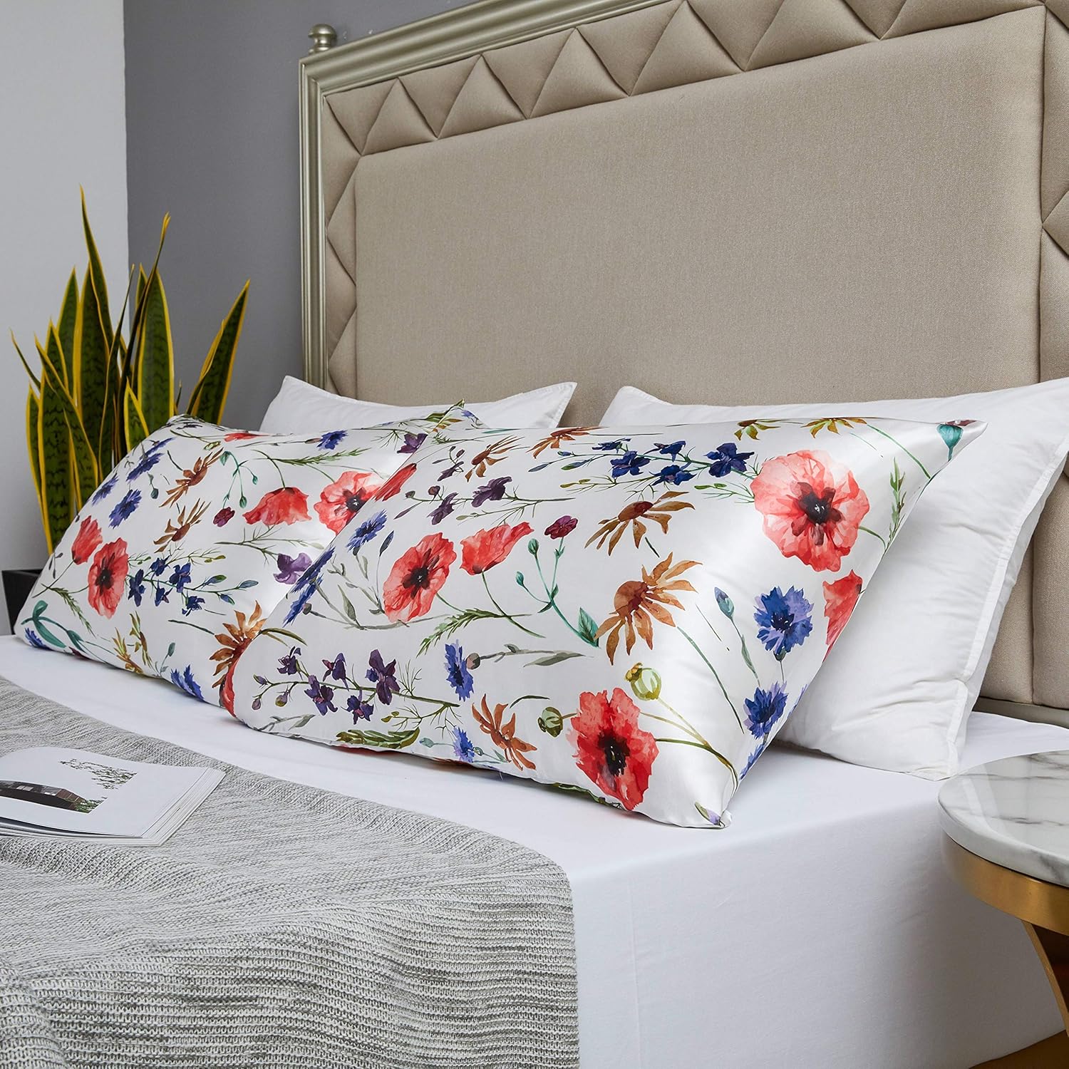 MR&HM Satin Pillowcase for Hair and Skin, Silk Satin Pillowcase 2 Pack, King Size Pillow Cases Set of 2, Silky Pillow Cover with Envelope Closure (20x40, Floral Mixted)
