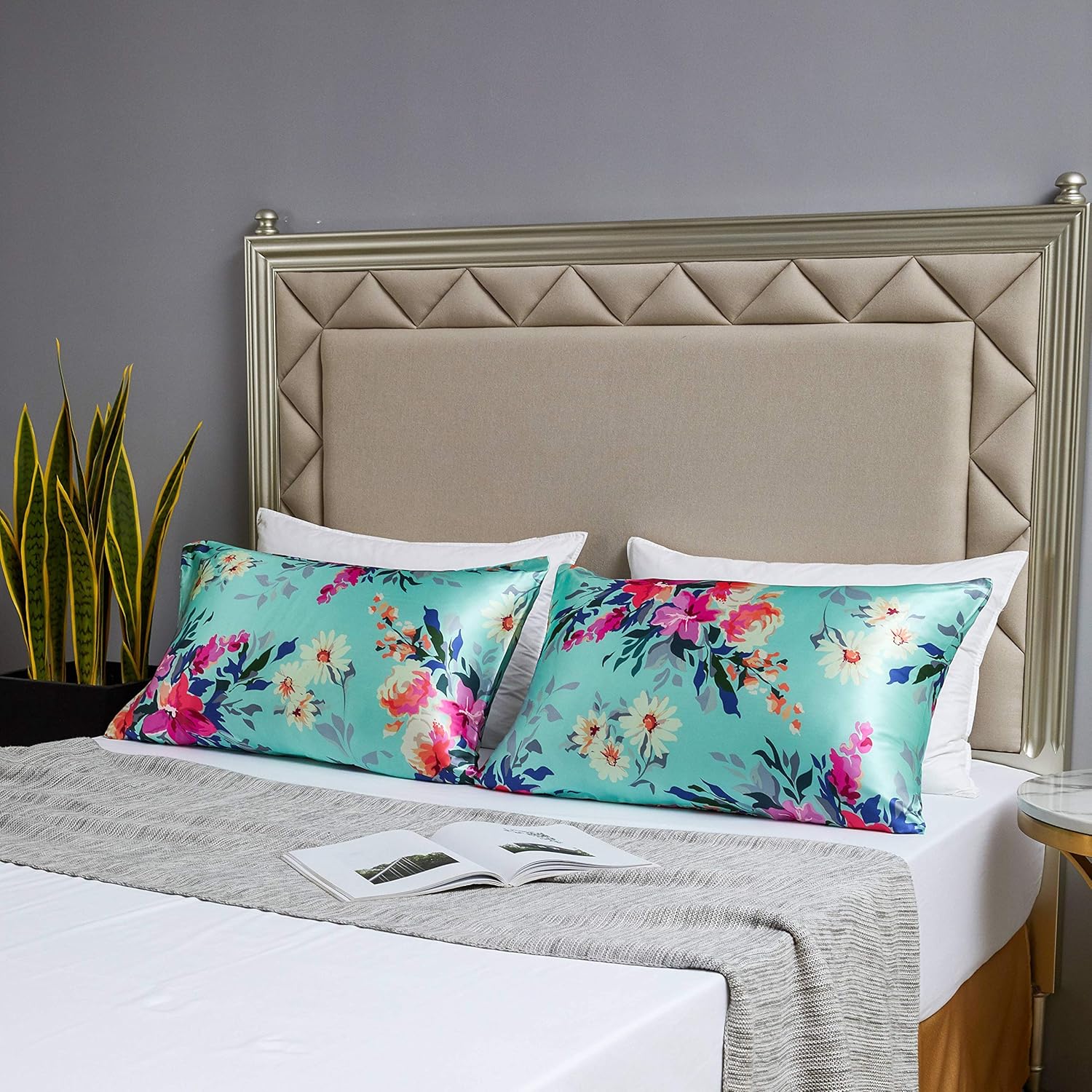 MR&HM Satin Pillowcase for Hair and Skin, Silk Satin Pillowcase 2 Pack, King Size Pillow Cases Set of 2, Silky Pillow Cover with Envelope Closure (20x40, Floral Green)