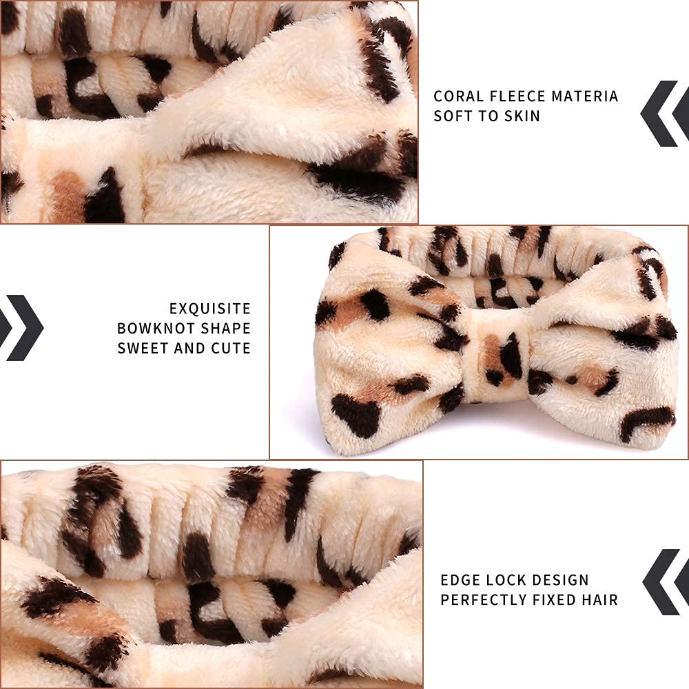 Casoty 6 Pcs Spa Soft Coral Fleece Bow-Style Headbands for Makeup, Face Washing, Shower, Skin Care, and Yoga