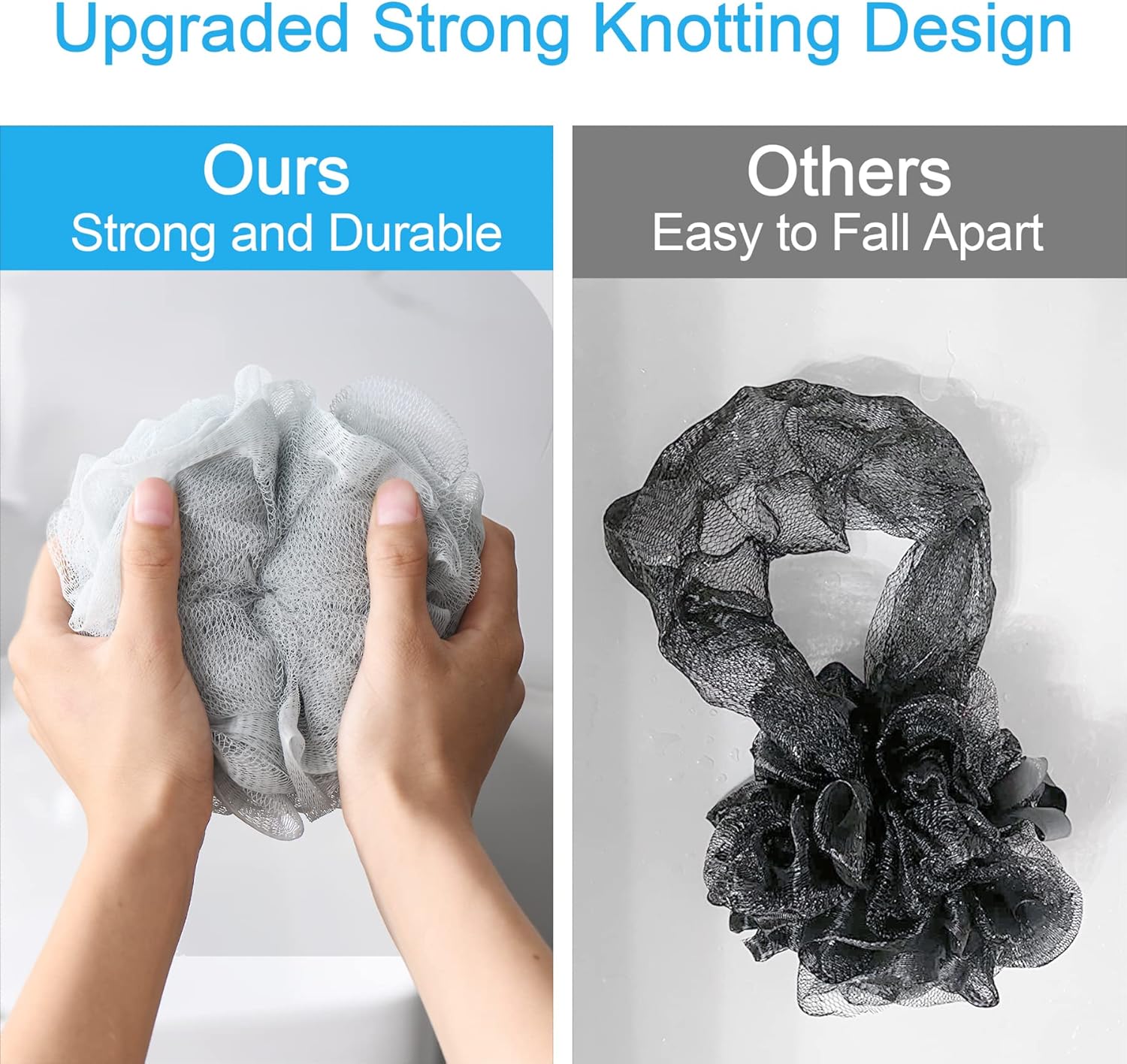 - Strong knotting design: The improved version of the loofah adopts special reinforcement and knotting technology, which greatly enhances the firmness and durability of the internal connection of the bath sponge.