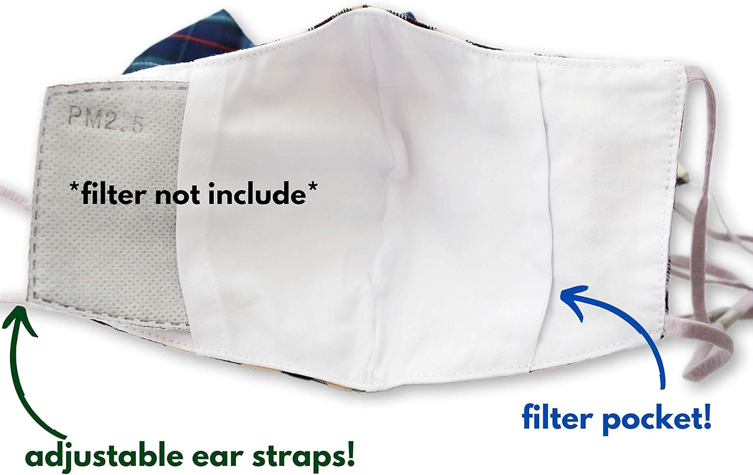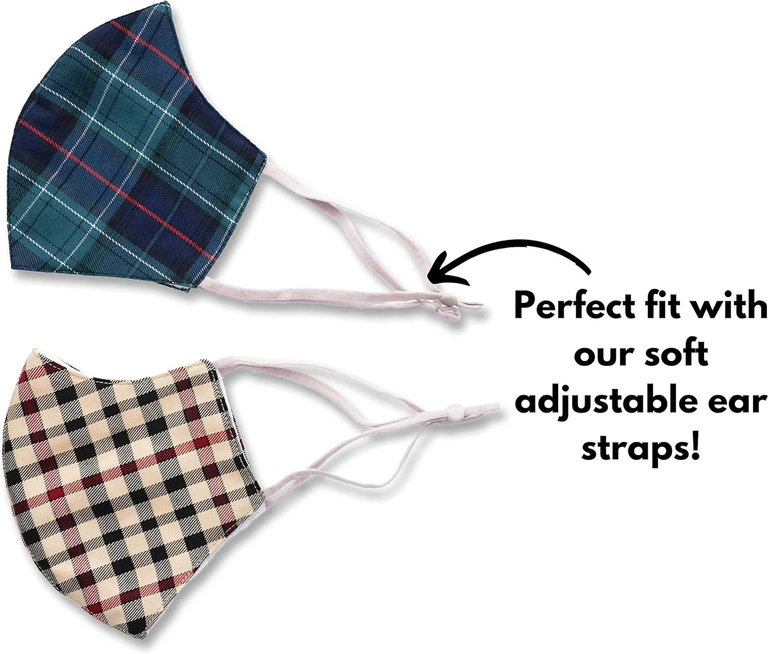 - FASHIONABLE MASKS: Stay stylish while you protect yourself with our unique designs. Green Plaid, Beige Plaid, Solid Black, and Solid Navy facemask designs that never go out of style! For more designs check out our collection of masks for Kids, Adults, Men and Women.