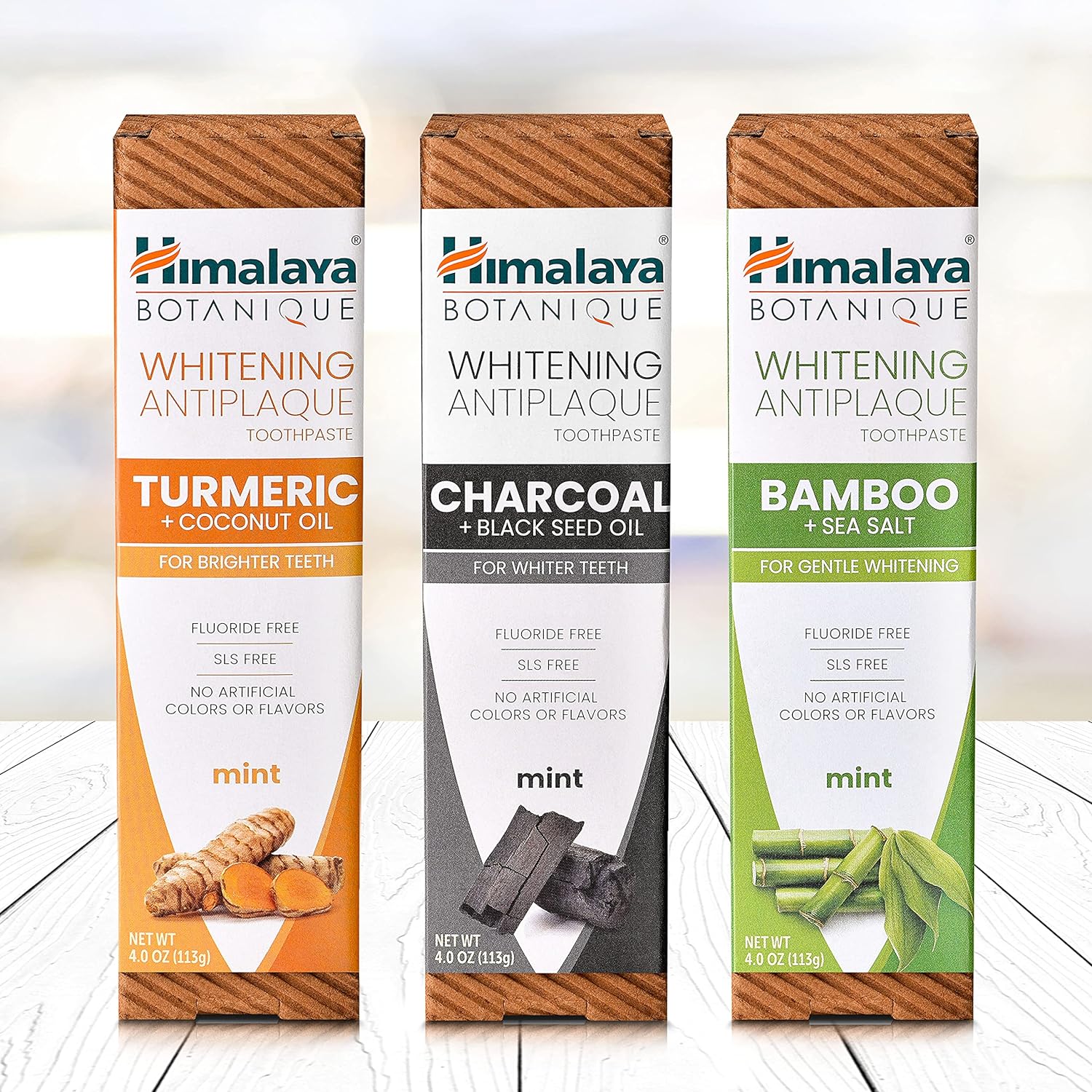 Himalaya Botanique Whitening Antiplaque Toothpaste with Bamboo + Sea Salt, Fluoride Free, for Gentle Whitening, 4 oz
