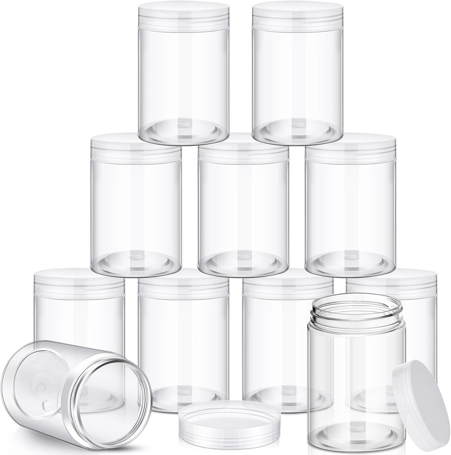 - Package: includes 12 packs plastic container jars with screw-on lid; They are refillable, and durable for a long-term use