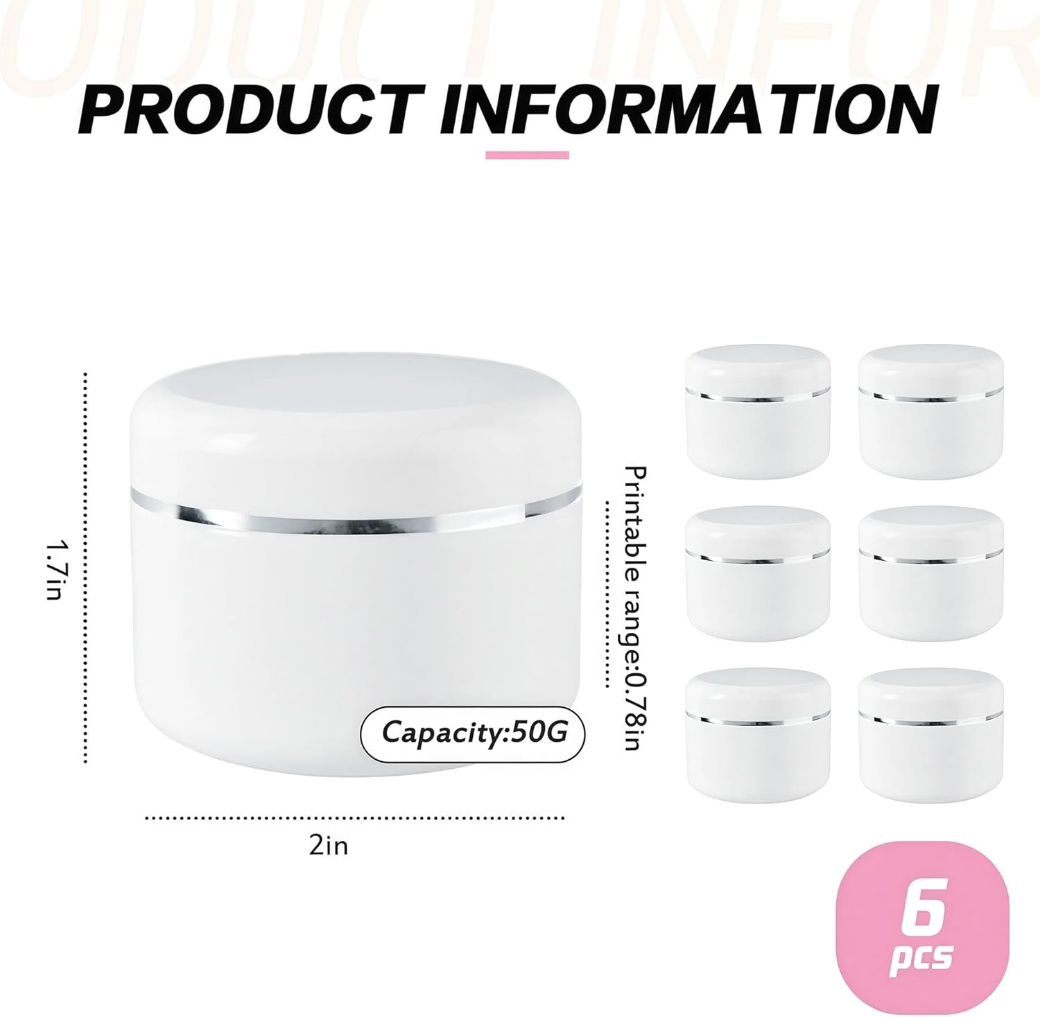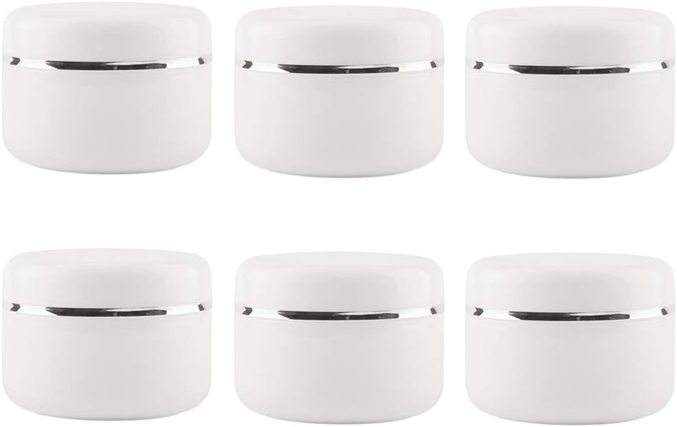 6PCS White Plastic Creams Jar with Inner Liners and Lid Empty Refillable Cosmetic Face Lotions Ointments Bottles Containers Lip Balm Storage Scrub Lotions Dispenser Jars Pots(50ML/1.69OZ)
