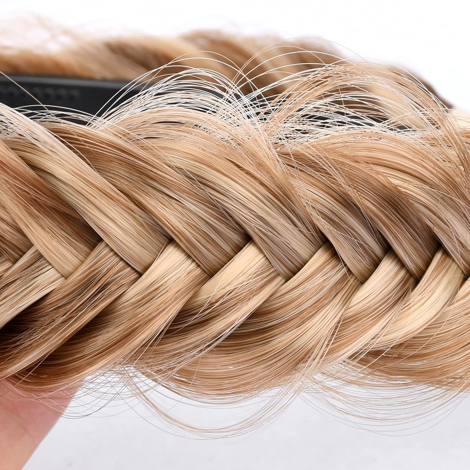 DIGUAN Headband Synthetic Hair Plaited Headband Braid With Teeth Hair Band Accessories for Women Girl Width 1.5 Inch (W-Highlighted)