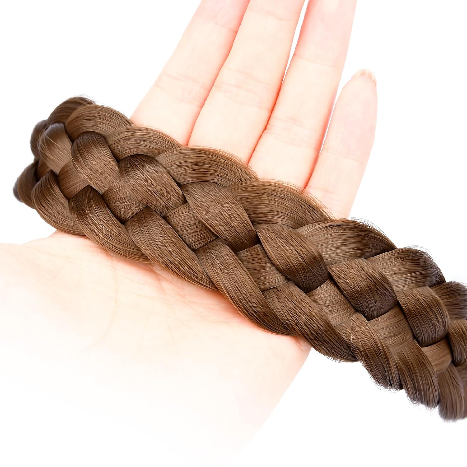 DIGUAN Width 1.5 inches Synthetic Hair Plaited Headband Braid With Teeth Hair Band Accessories for Women Girl(W-Medium Brown)