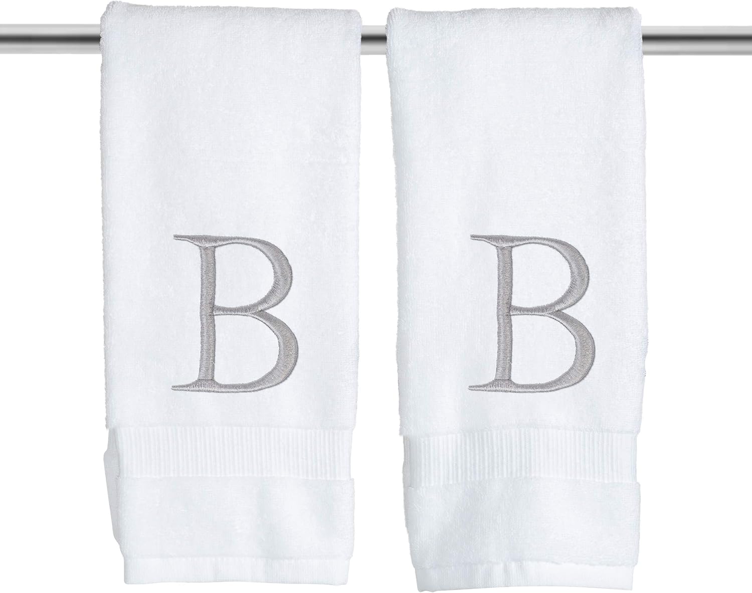 Monogrammed Hand Towels for Bathroom - Luxury Hotel Quality Personalized Initial Decorative Embroidered Bath Towel for Powder Room, Spa - GOTS Organic Certified - Set of 2 Letter B
