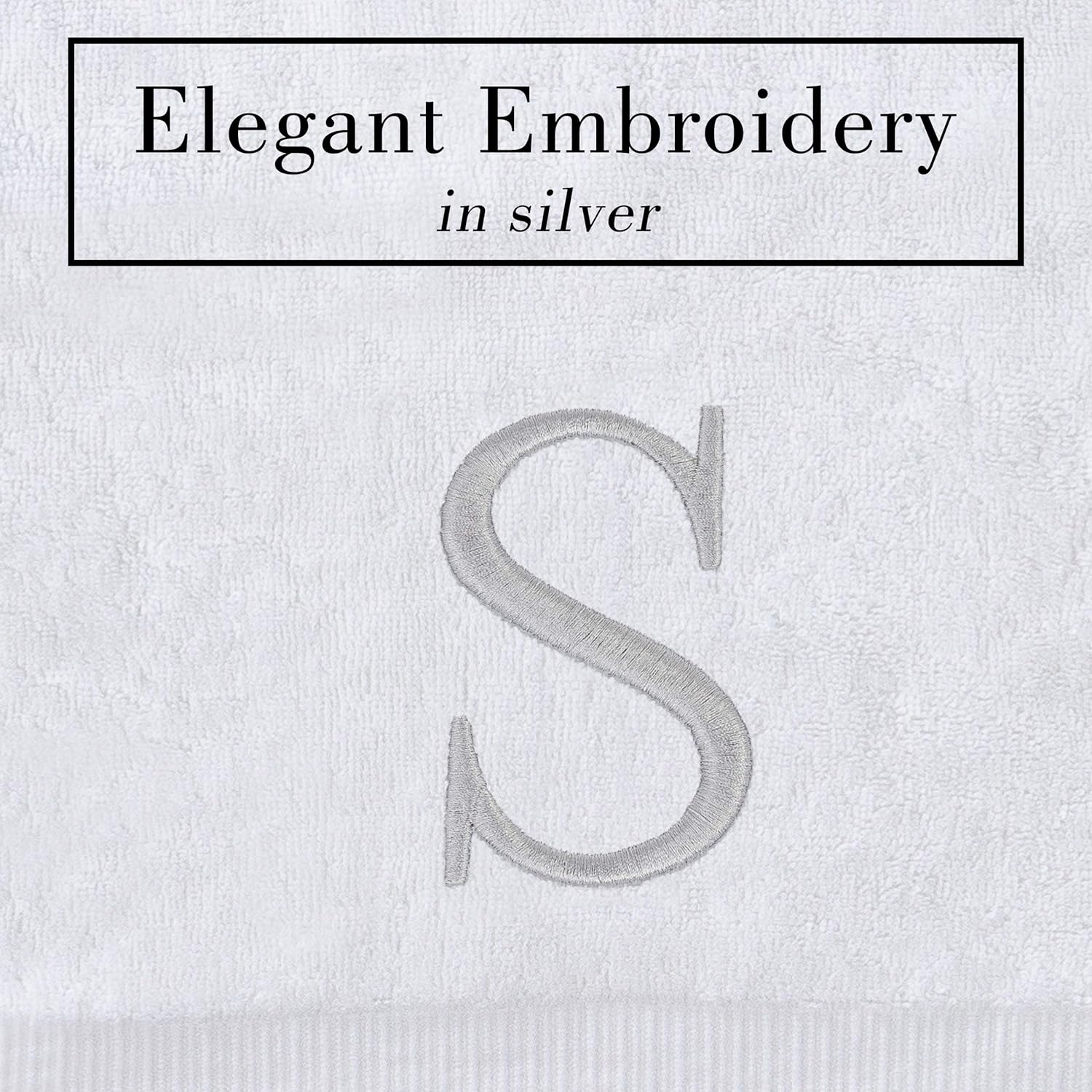 - Premium Quality - High quality durable soft rich monogrammed letter hand towels in white cotton with silver stitching
