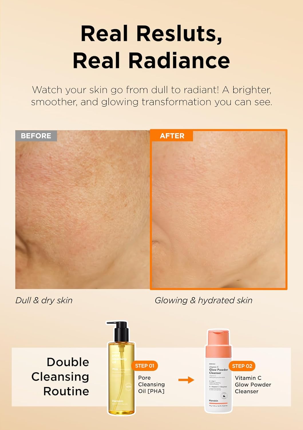 Hanskin Vitamin C Glow Powder Cleanser - Gentle Face Wash for Brightening & Radiant Skin, Papaya Enzyme Powder Facial Cleanser for Dry Skin, Exfoliating & Refreshing Korean Skincare [2.36 fl oz.]