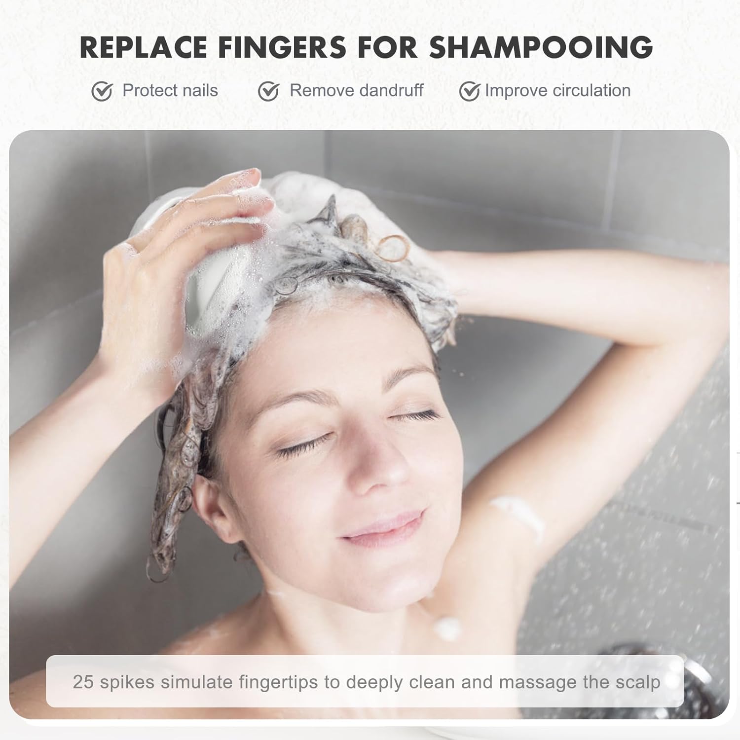 - 【Ergonomic Design】 The mouse-like handle fits your palm perfectly, non-slip grooves ensure a stable grip even in the shower. The concave brush surface formed by 25 tips fits the scalp for maximum working area.