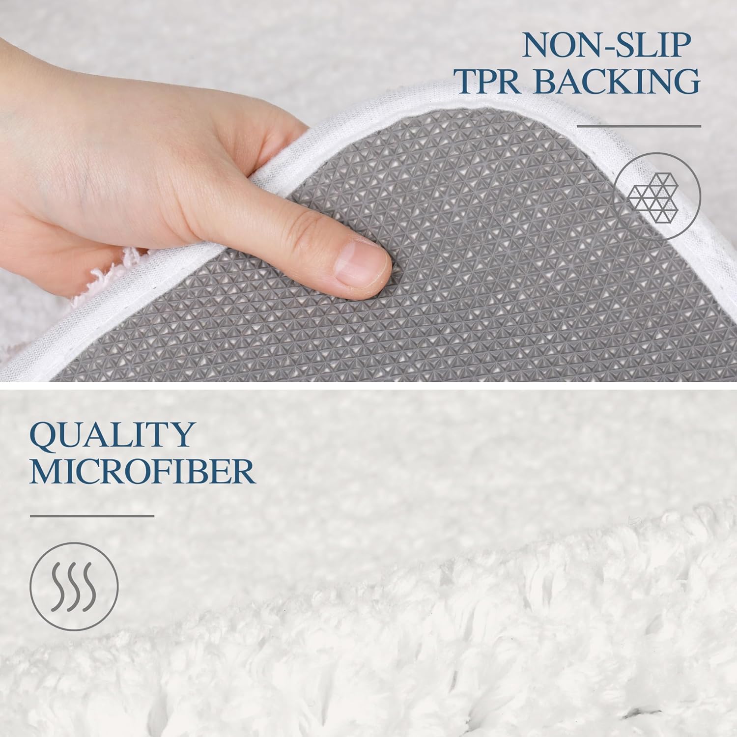 Walensee Bathroom Contour Rug (20x24, Ivory) Non Slip Bath Mat Water Absorbent Soft Microfiber Shaggy Bathroom Mat Machine Washable Bath Rug U Shape Toilet Rug
