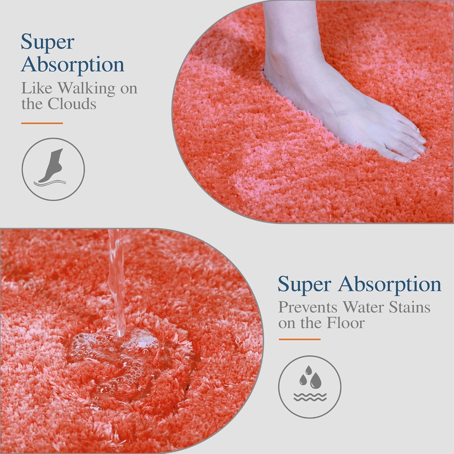 Walensee Bath Rug for Bathroom Non Slip Bathroom Mat (20 x 32, Iiving Coral) Water Absorbent Soft Microfiber Shaggy Rug Machine Washable Bath Mat Thick Plush Shower Mat