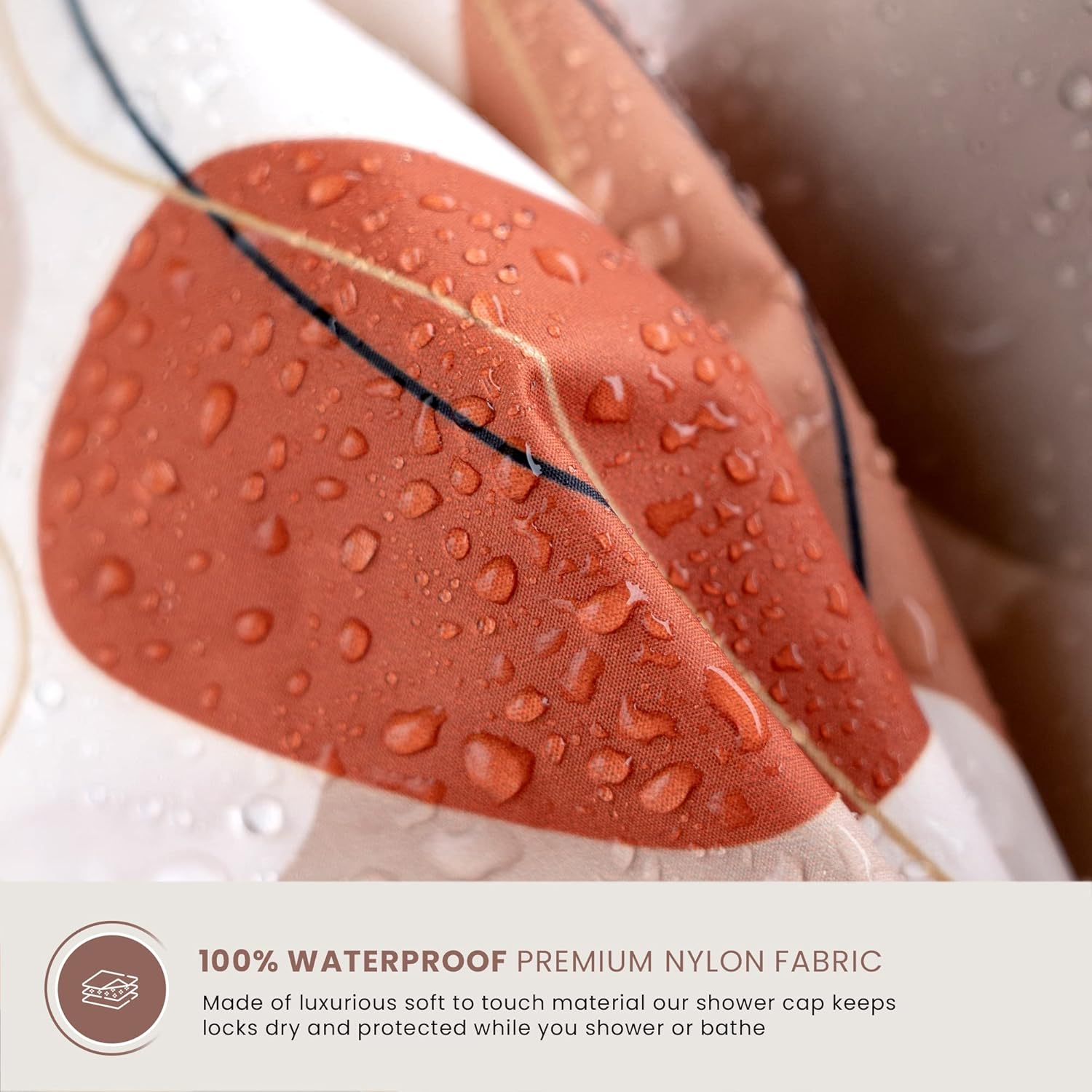 - THE AVERAGE SHOWER HAIR CAP is poorly made with flimsy materials, FALLING APART after a few uses. Crafted out of DURABLE, 100% waterproof polyester with a LIGHTWEIGHT, BREATHABLE feel, our washable shower cap is SOFT TO THE TOUCH and resistant to wrinkling & tearing. So you can count on it for LONG-LASTING PROTECTION against moisture – and say buh-bye to the WASTEFUL CYCLE of plastic hair caps.