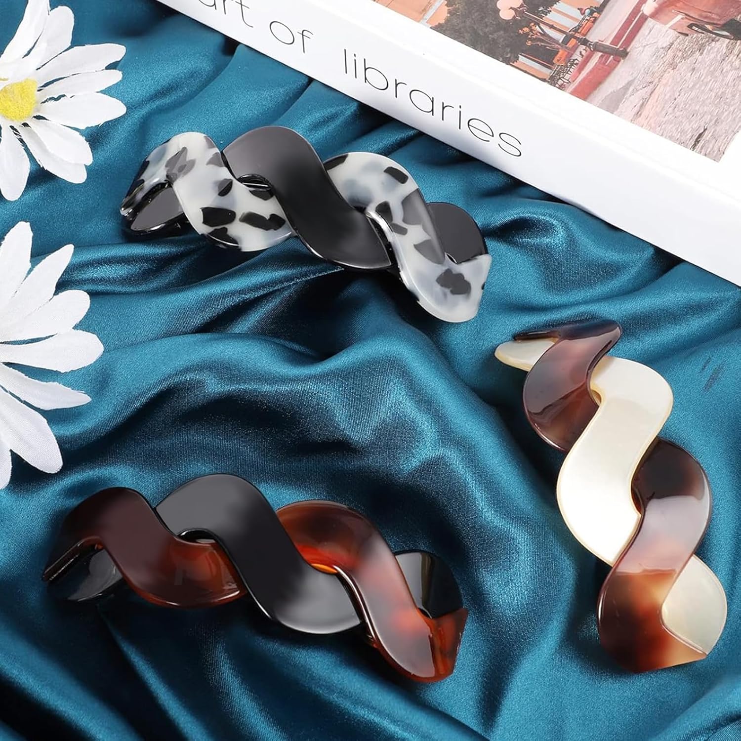 Hair Clips (3 Count) - Large Hair Barrettes for Thick Hair - 3pcs Elegant French Barrettes Retro Hair Accessories for Women Daily Wear