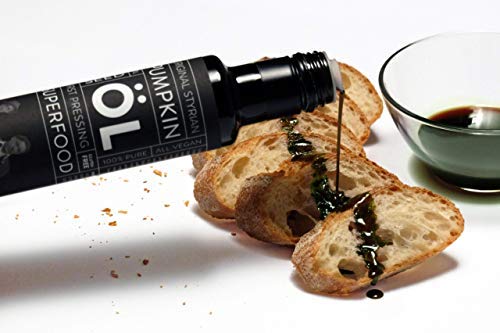 - ✅ HIGHEST QUALITY: 100% natural, premium, cold pressed, unfiltered and unrefined oil is prepared under strict quality control. Only our bottles of pumpkin seed oil bear the logo PGI, which ensures that the oil is under strict environmental protection and is 100% pure. 100% pure Styrian pumpkin seed oil from Austria, No additives or preservatives, Pressed seeds from a special pumpkin that grows only in the Styrian region of Austria. Best as a Gift.