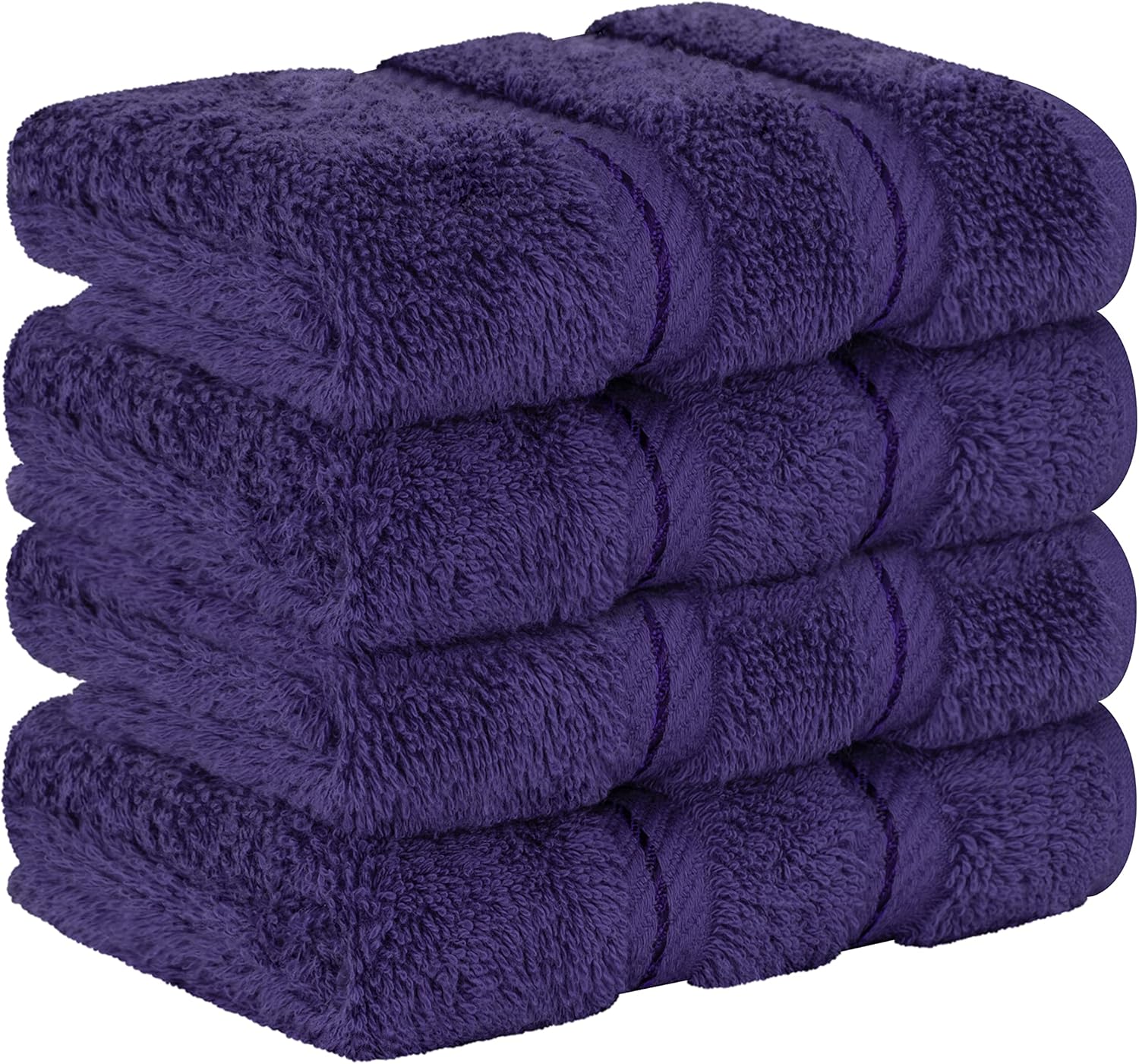 American Soft Linen Luxury Washcloths for Bathroom, 600 GSM 100% Cotton 4 Piece Turkish Wash Cloth Set, 13x13 in Soft Rags for Body and Face, Purple Washcloths
