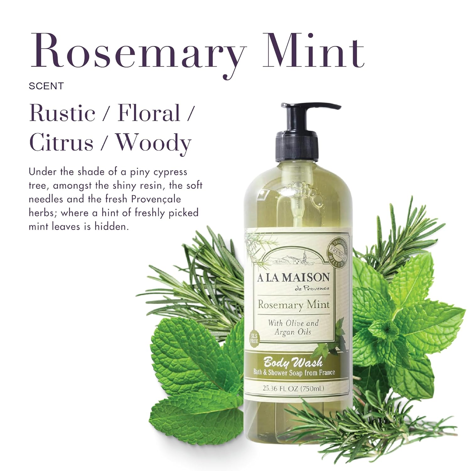 A LA MAISON Hydrating Body Wash Rosemary Mint, Uses: Body - Triple French Milled, Essential Oils, Plant Based, Vegan, Cruelty-Free, Alcohol & Paraben Free (25.36 oz, 2 Pack)