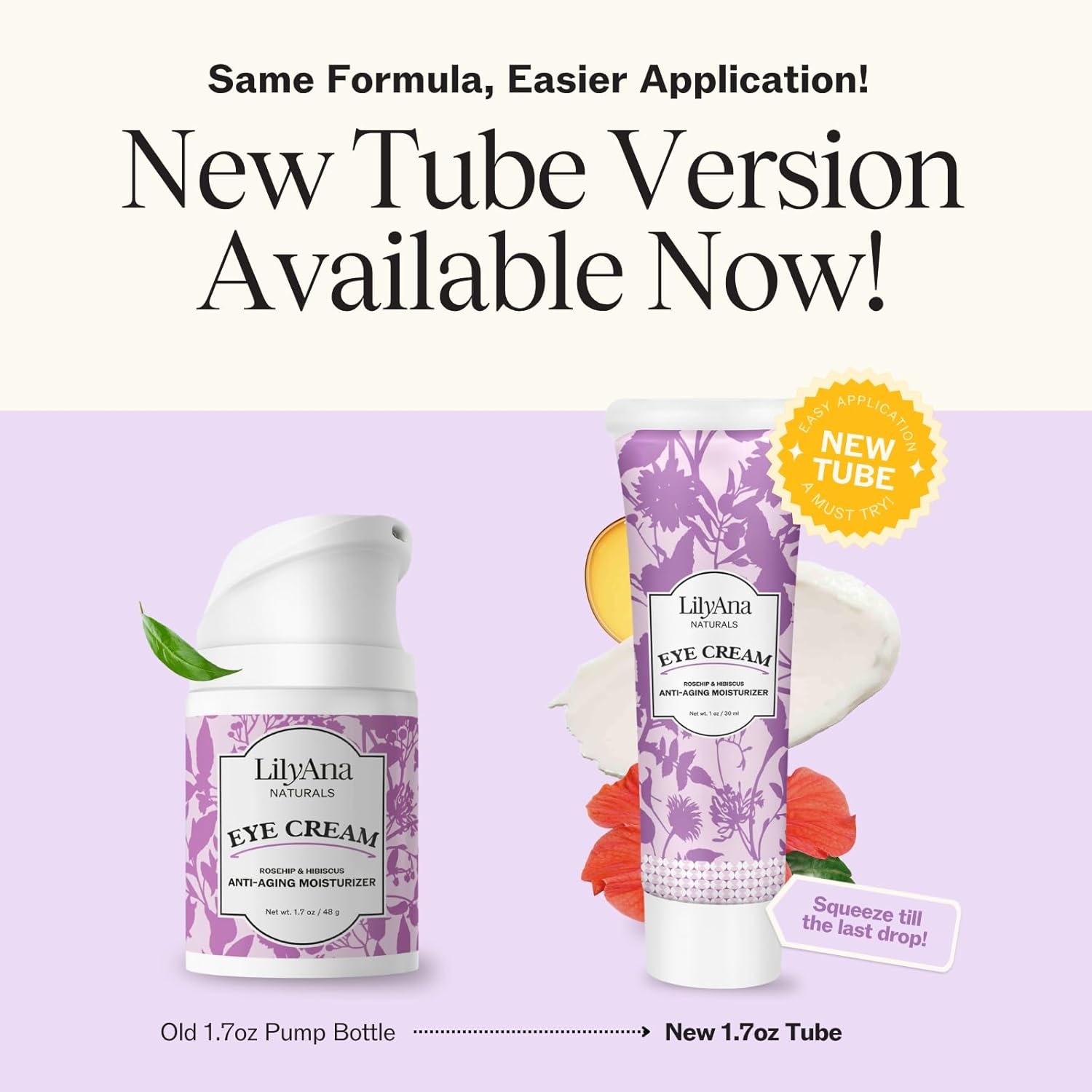 LilyAna Naturals Eye Cream for Dark Circles and Puffiness, Under Eye Cream for Wrinkles and Bags, Anti Aging helps Improve Dryness; for Sensitive Skin (1.7 Ounce, Pack of 2)