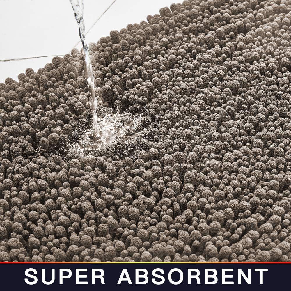 Walensee Large Bathroom Rug Non Slip Bath Mat (72x24 Inch Taupe) Water Absorbent Super Soft Shaggy Chenille Machine Washable Dry Extra Thick Perfect Absorbant Best Plush Carpet for Shower Floor