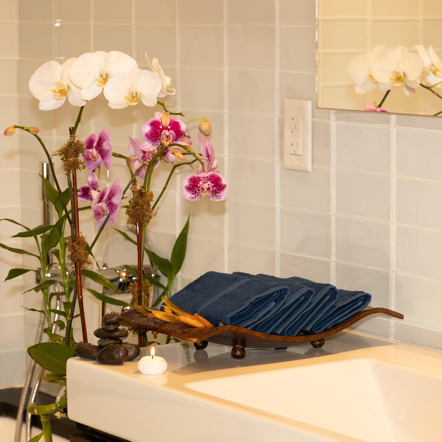 Mosobam Luxury Turkish Towels Set of 8 Washcloths 13X13 Navy Blue 700 GSM Bamboo Viscose & Aegean Turkish Combed Cotton
