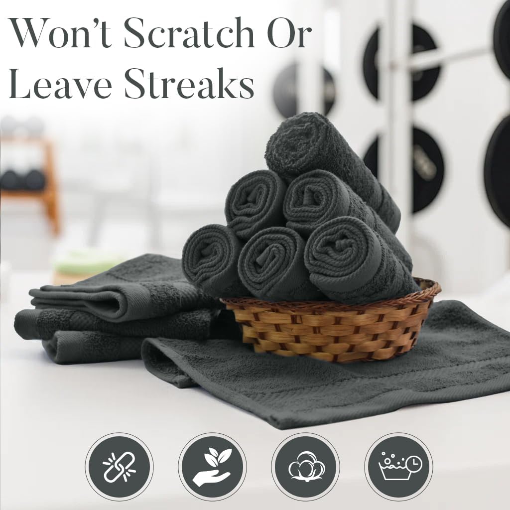 DAN RIVER 12-Pack Premium 100% Cotton Gray Face Towels – Reusable Face Towel Set, Soft & Absorbent Cotton Cloths for Bathroom & Body – Hand and Face Towels, 550 GSM (12x12 in)