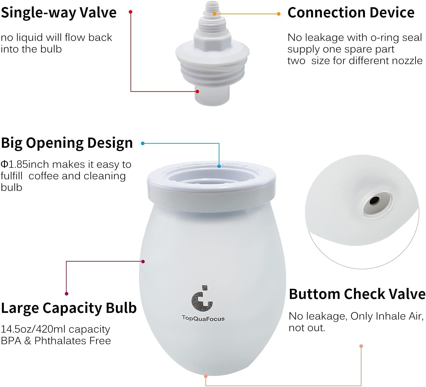 - 1.78 INCH OPENING DESIGN: Enema bulb has 1.78INCH,with big open for easy clean, screw type connect for easy change tip,the buttom build-in breathe valve for high efficiency operation.
