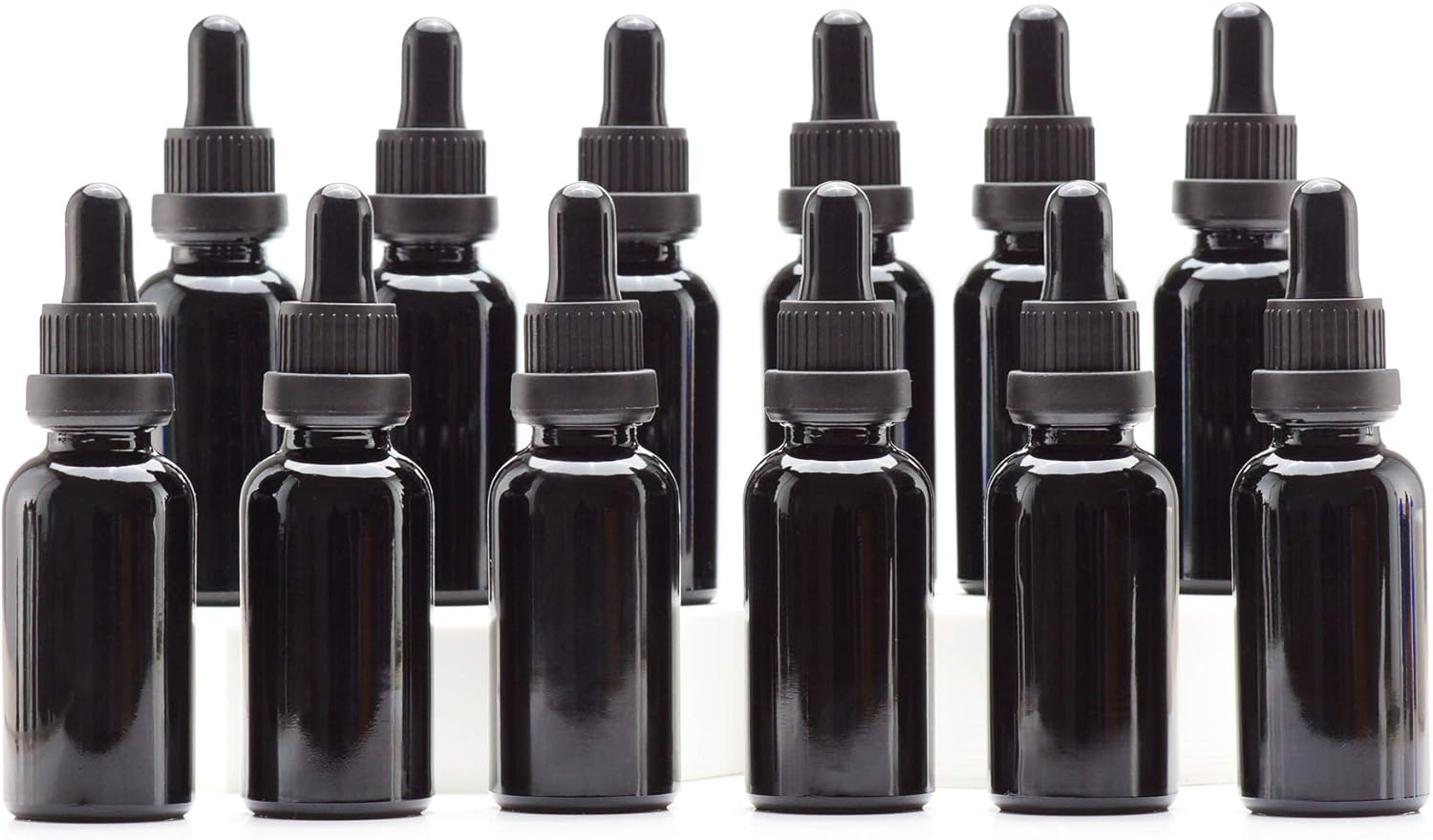 - [Glass Bottle with Dropper 1oz] Eye Dropper Bottles glass is black, it designs to protect the essential oil against UV rays. Made from high quality glass.BPA FREE.Refillable, washable and travel friendly. leak proof