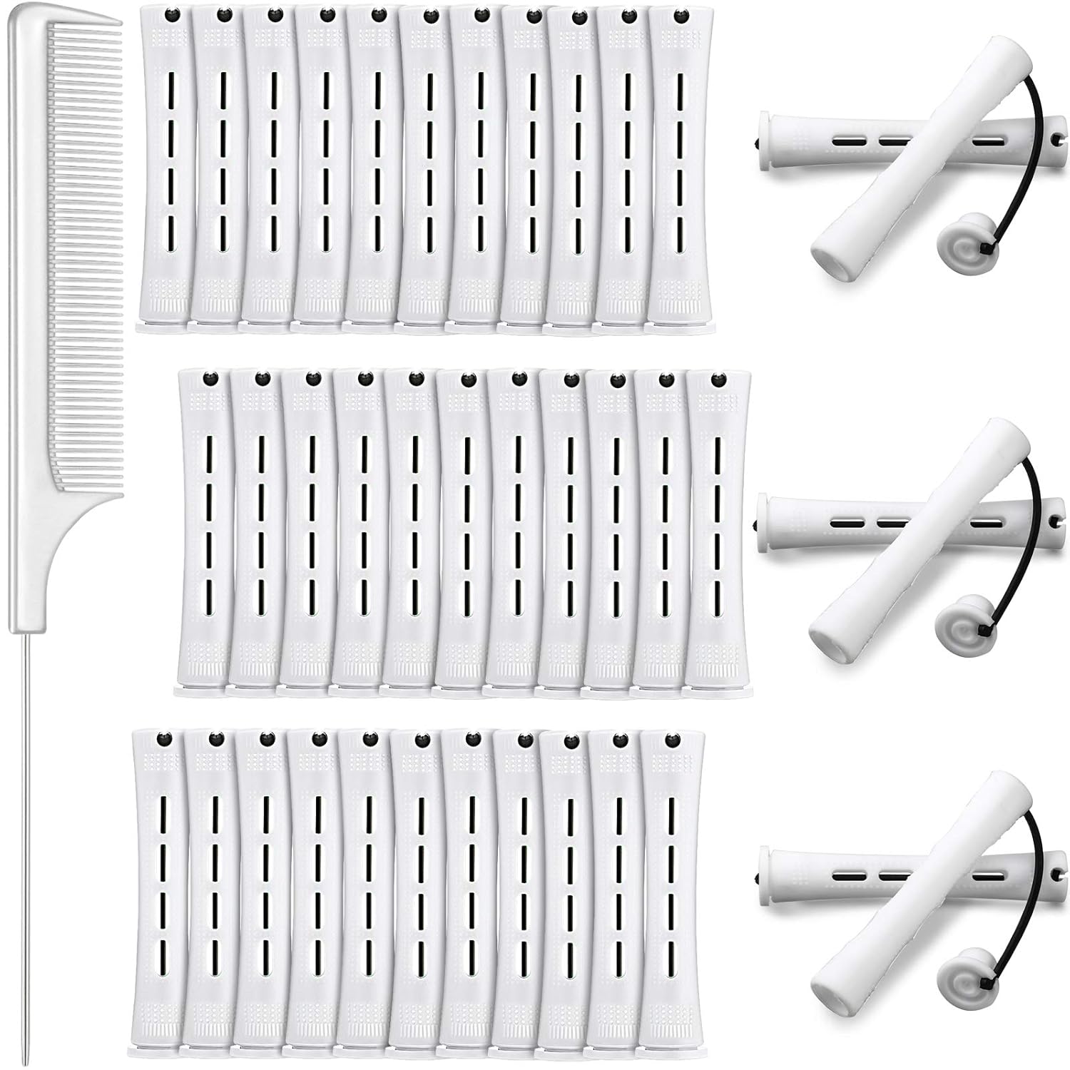 - Simple to apply: just use the rat tail comb to separate a small handful of slightly damp or dry hair, and wrap it on the rods; Then use the rubber band to fix it, does not require heating, no harm to the hair; Just wait for a while, you can make a natural curling hairstyle, adjust the direction of starting roll hair in or out can create various hair wave