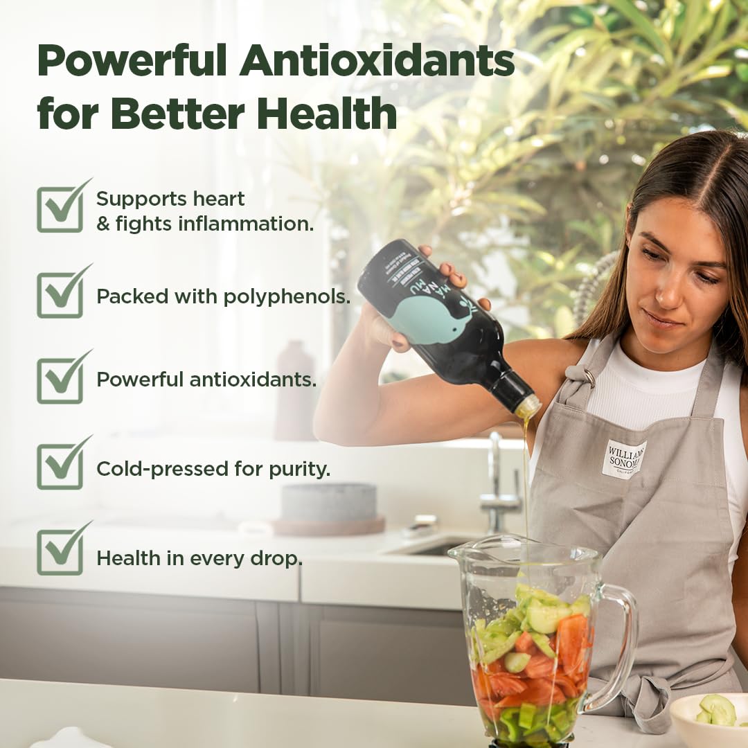 - HEALTH BENEFITS > High levels of POLYPHENOLS (antioxidants) and rich in Omegas for health benefits, such as improving the immune system, lowering cholesterol and blood pressure. Certified Extra Virgin Olive Oil is a natural superfood, it does NOT contain gluten / cholesterol / sodium. Excellent natural substitute for butter.