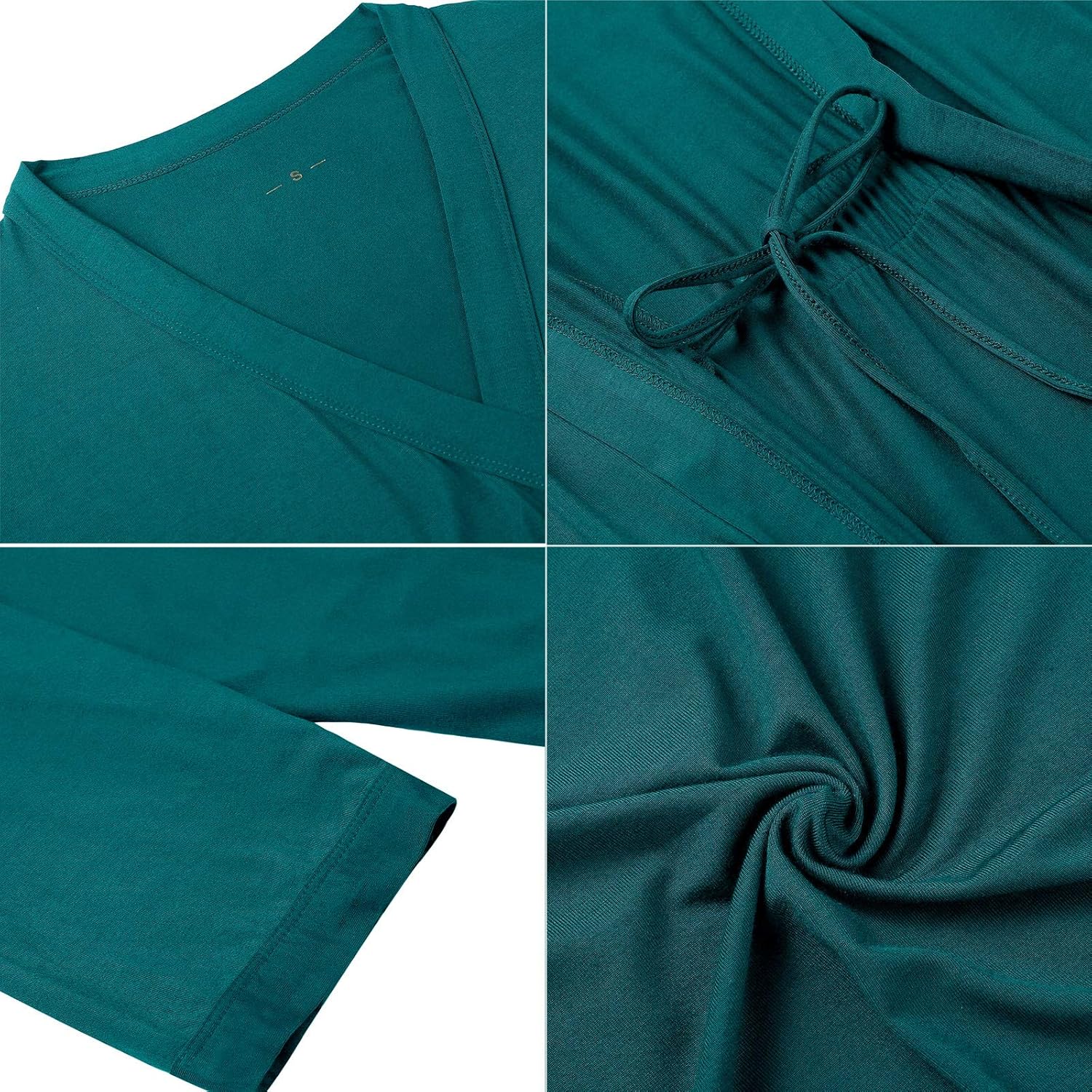 - Unique Design —— This comfortable and sexy bath robe features 3/4 sleeves wrap design robe, waist front tie, side pockets to keep your hands warm or to keep things close by your side while you are lounging or nursing your baby.